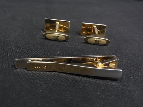 CELINE セリーヌ 馬車金具 ネクタイピン タイクリップ カフスボタン カフリンクス 2点セット ビジネス 紳士 メンズ ゴールド系 DK0265