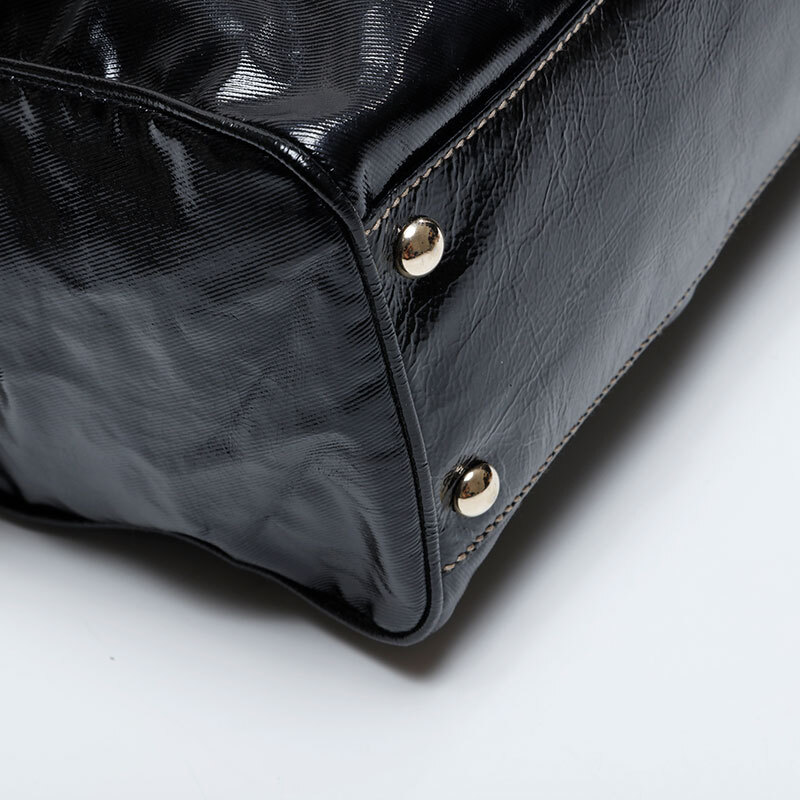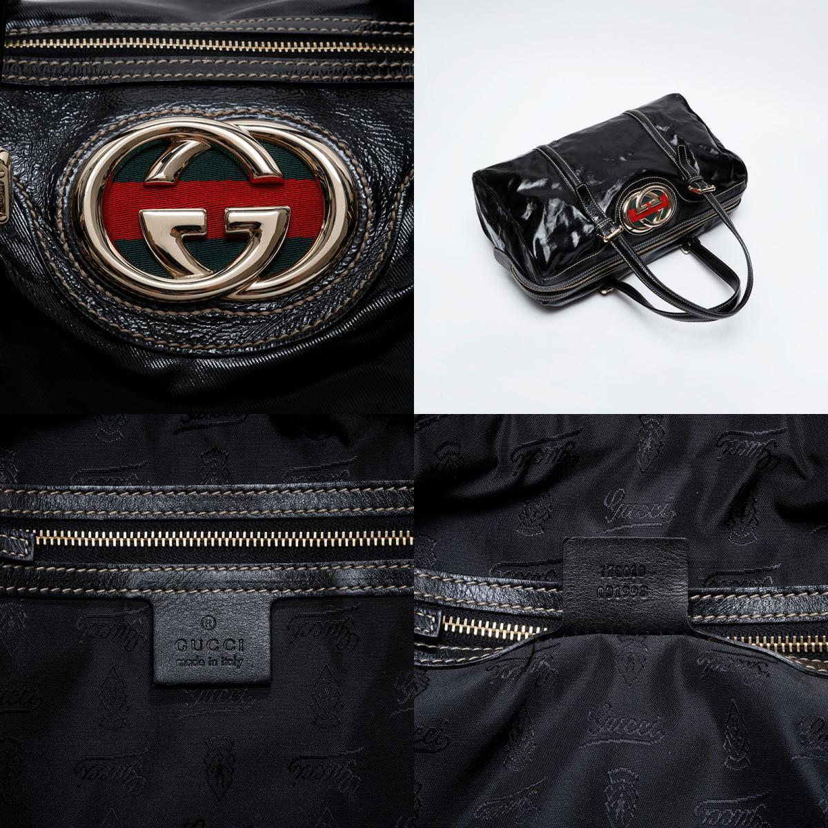 極美品 GUCCI エナメル ニューブリット インターロッキング シャリーライン ハンドバッグ ブラック