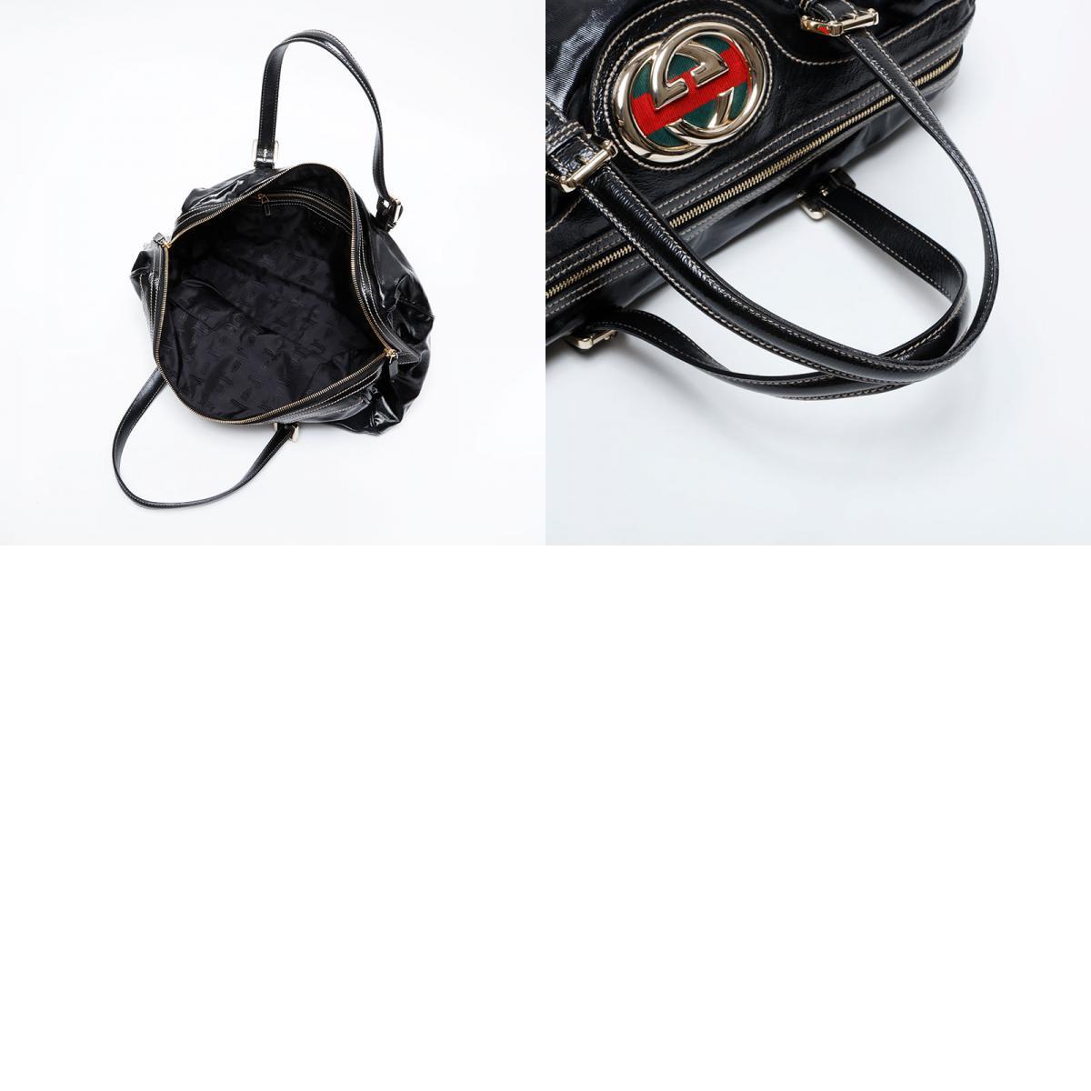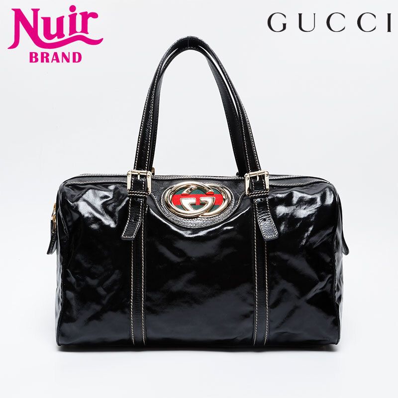 グッチ GUCCI ハンドバッグ エナメル ニューブリット インターロッキング シャリーライン ブラック