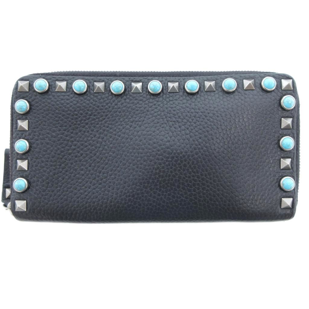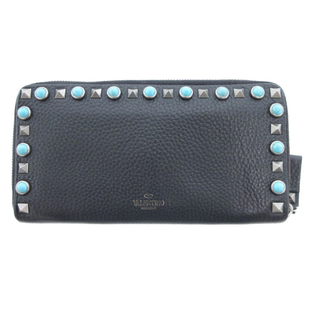 ヴァレンティノ ガラヴァーニ VALENTINO GARAVANI 長財布 ラウンドファスナー レザー スタッズ ブラック /UO メンズ レディース
