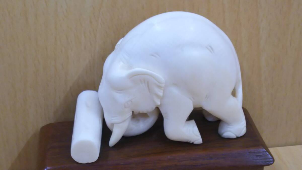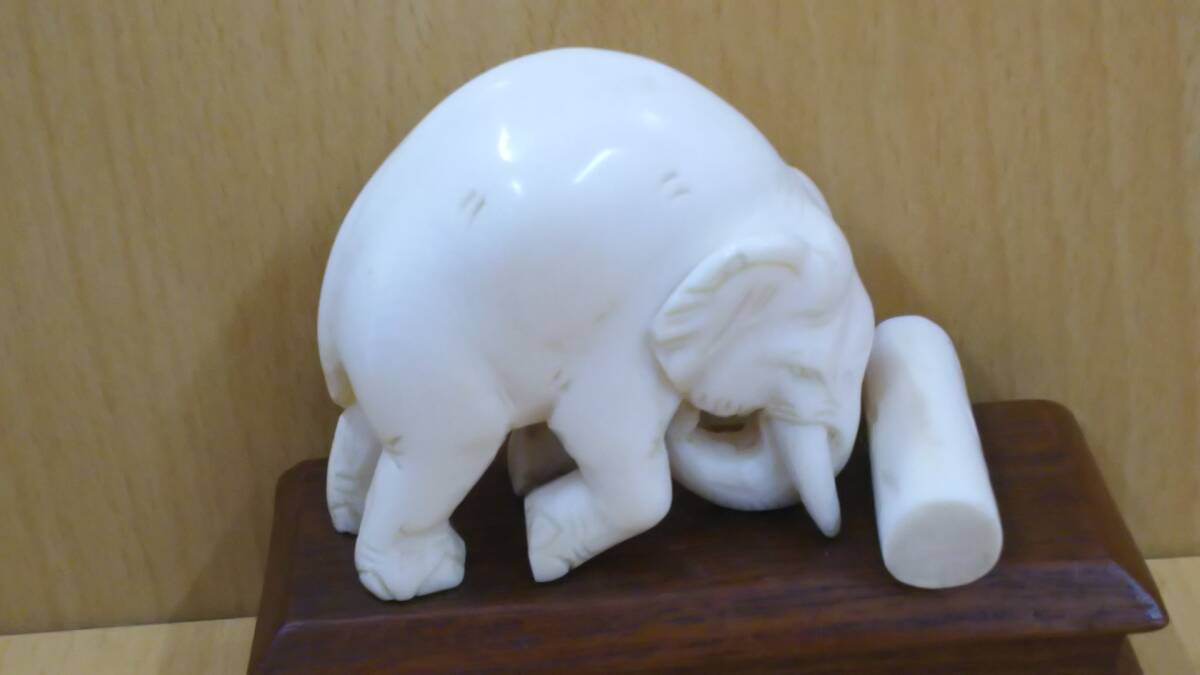 【丸-1828】象/置物/ゾウ/ぞう/高さ約8.5cm/横約10cm/ 重さ145g(台座含む)(yu) |
