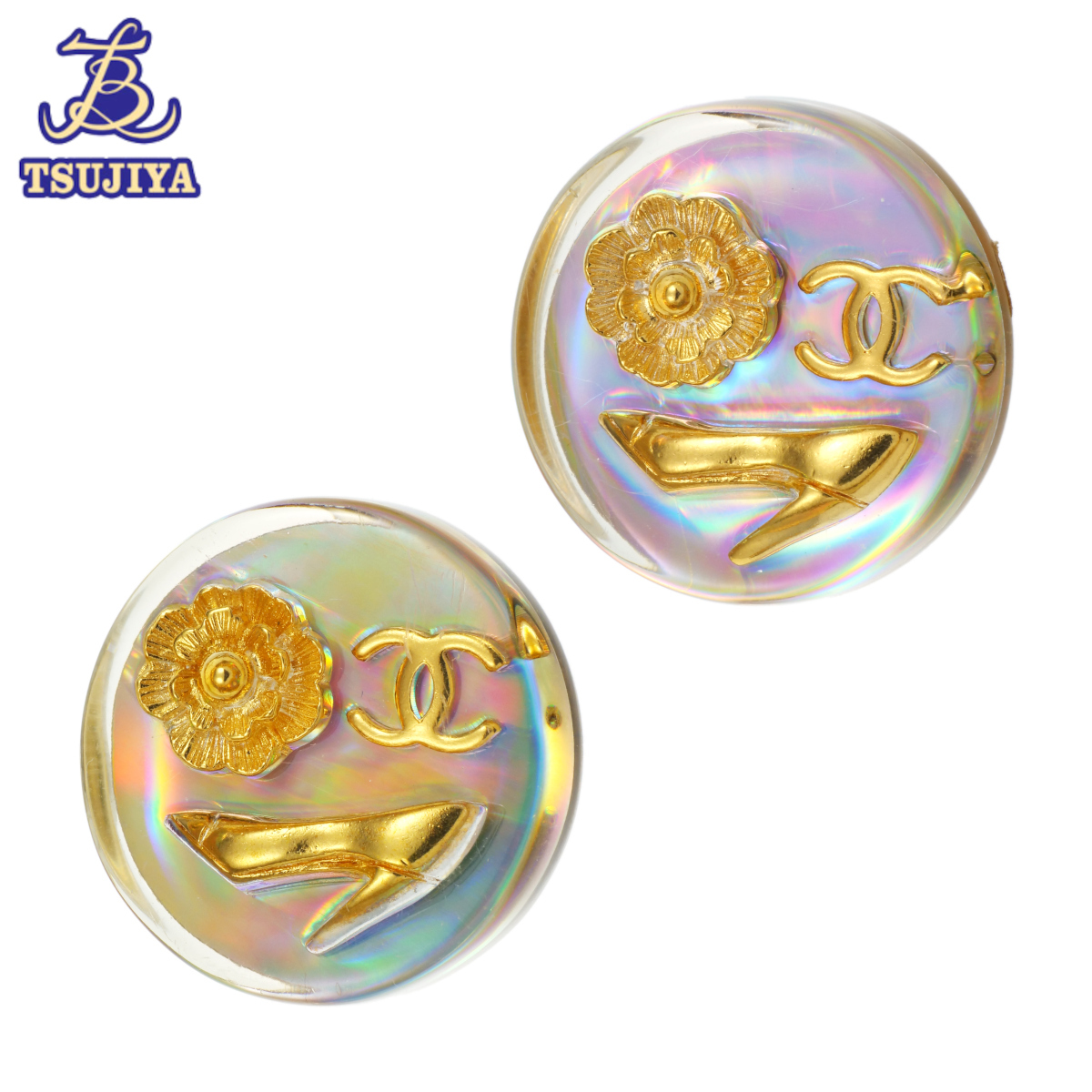 CHANEL シャネル ココマーク カメリア ハイヒールラウンドイヤリング クリアゴールドメッキ 24.6mm 16.4g 中古AB【辻屋質店J2213】 | |