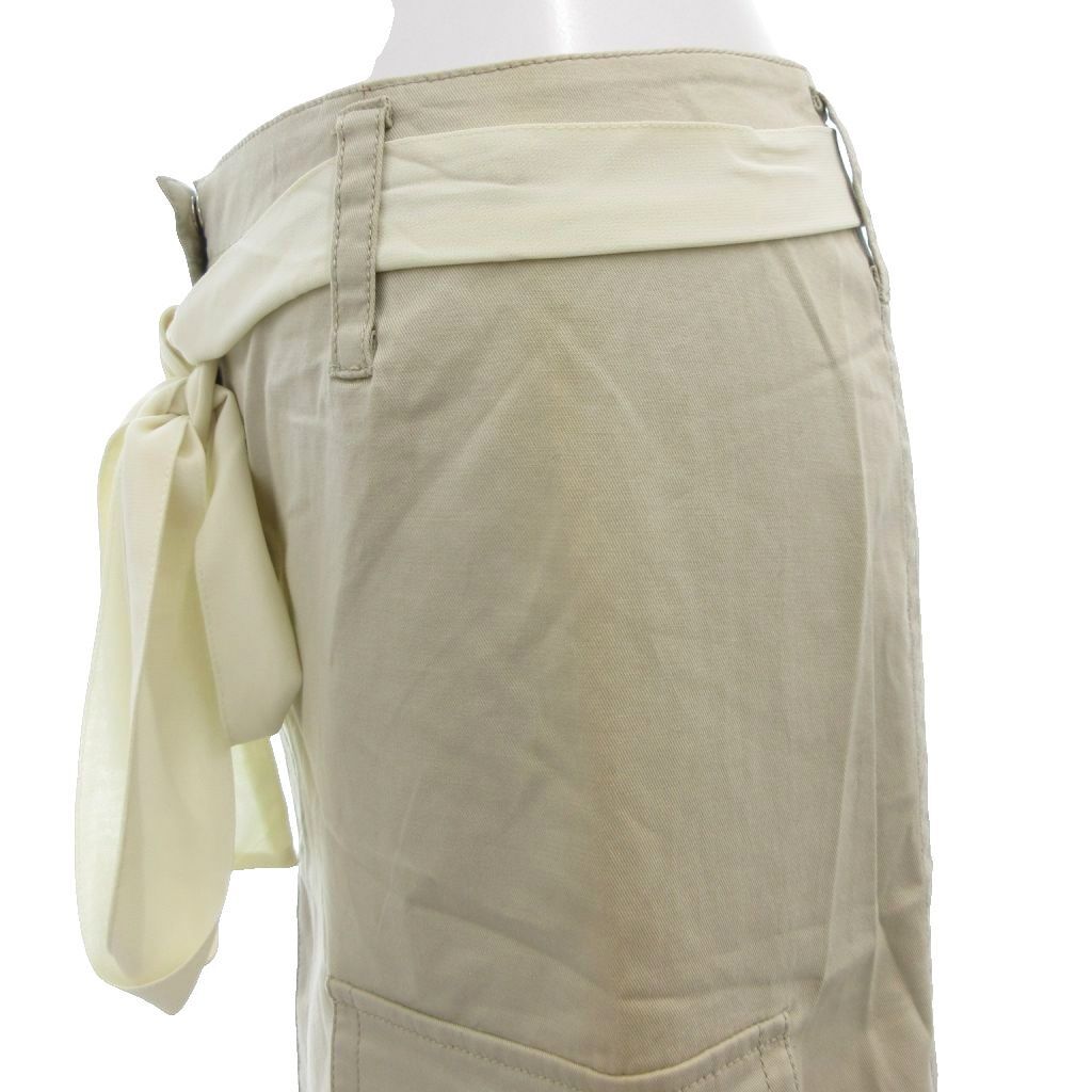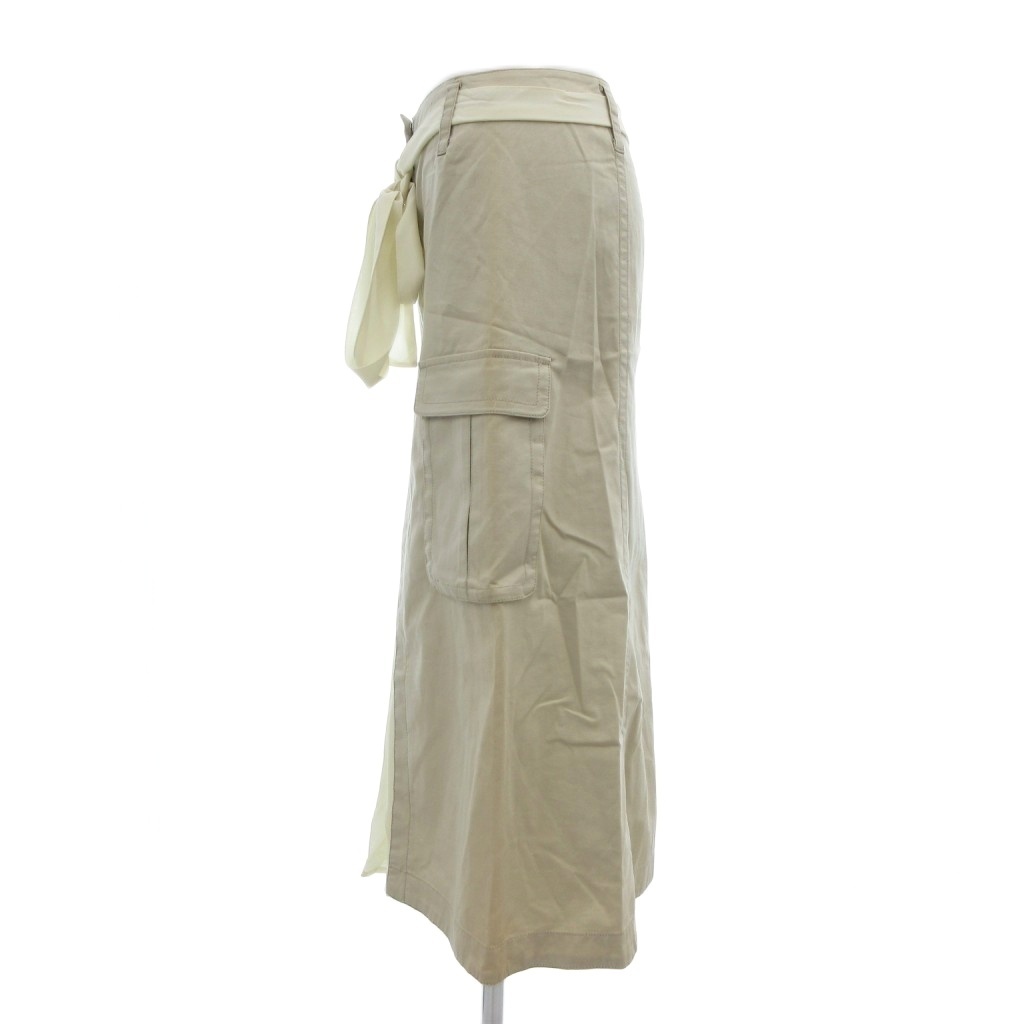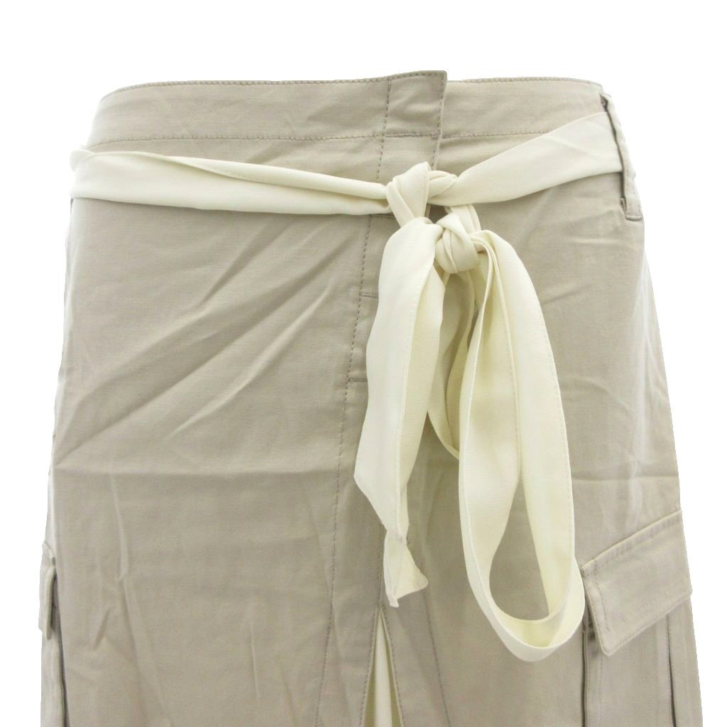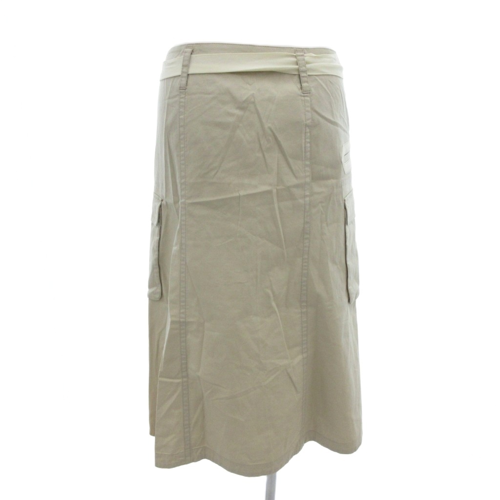 ダナキャランニューヨーク DKNY フレアスカート ミモレ ロング 異素材切替 ベルトリボン 2 M ベージュ /FT ■GY09 レディース