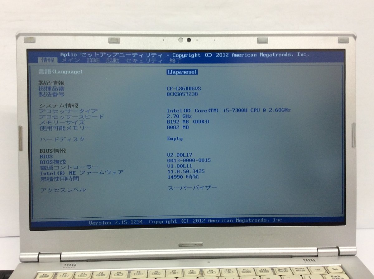 ジャンク/ Panasonic CF-LX6RDGVS Intel Core i5-7300U メモリ8.19GB ストレージ無し 【K20191】