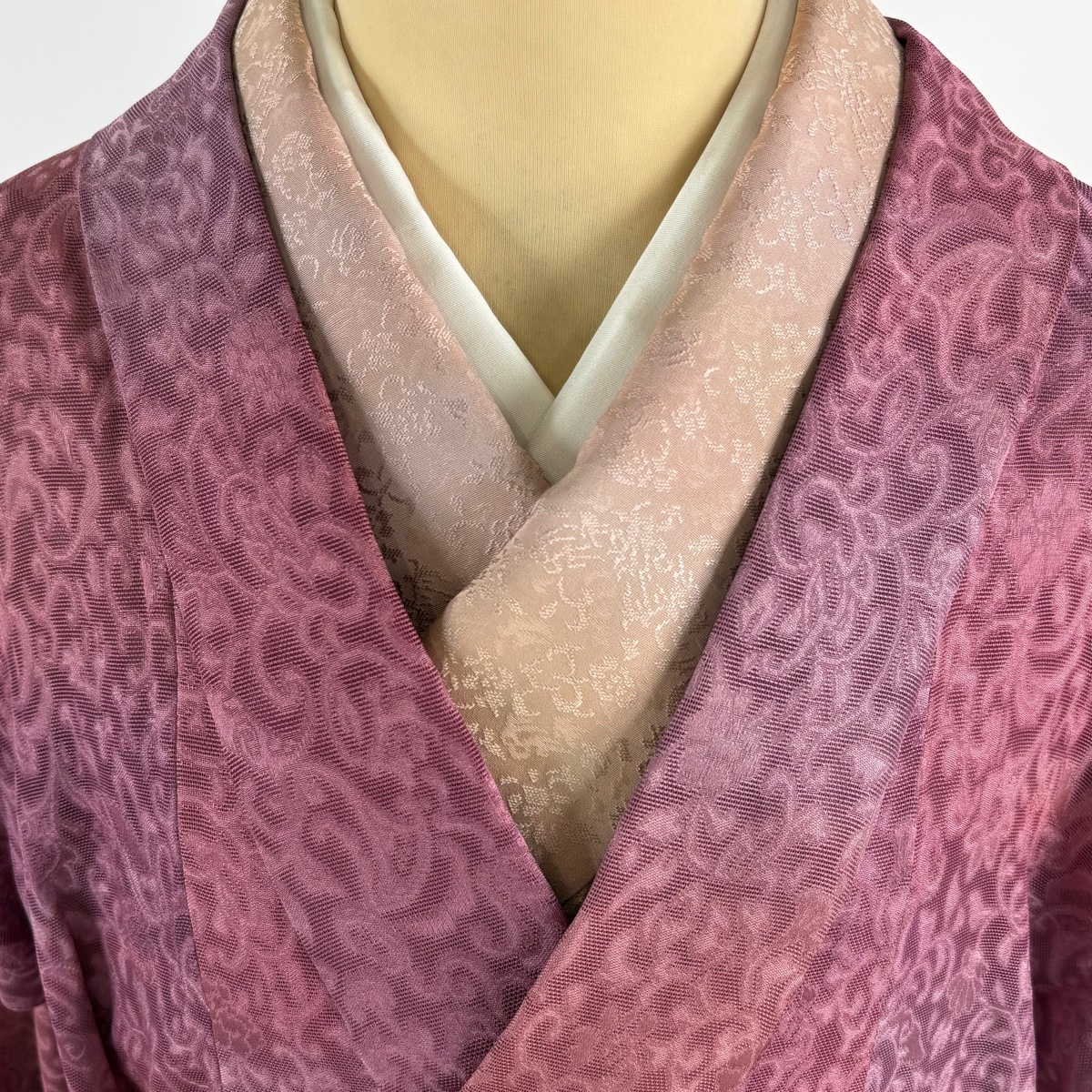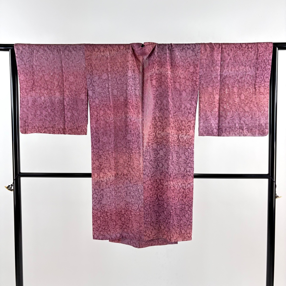 | 道中着 美品 逸品 和装コート 着物衿 花唐草 赤紫 身丈98.5 裄丈67.5 L 正絹 【中古】 |