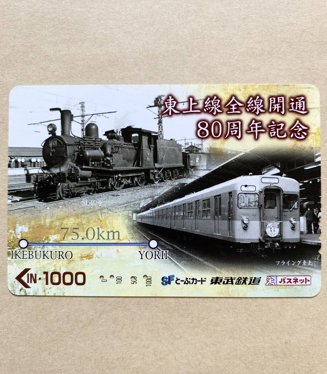 【使用済】 パスネット 東武鉄道 東上線全線開通80周年記念 蒸気機関車SL40形/フライング東上号(8000系)