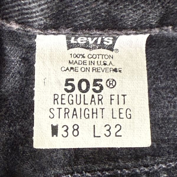 USA製 Levi's 505 ブラック デニム パンツ W38×L32 ビッグサイズ サルファ 後染め 黒 ジーンズ リーバイス 501 519 90s 00s ビンテージ