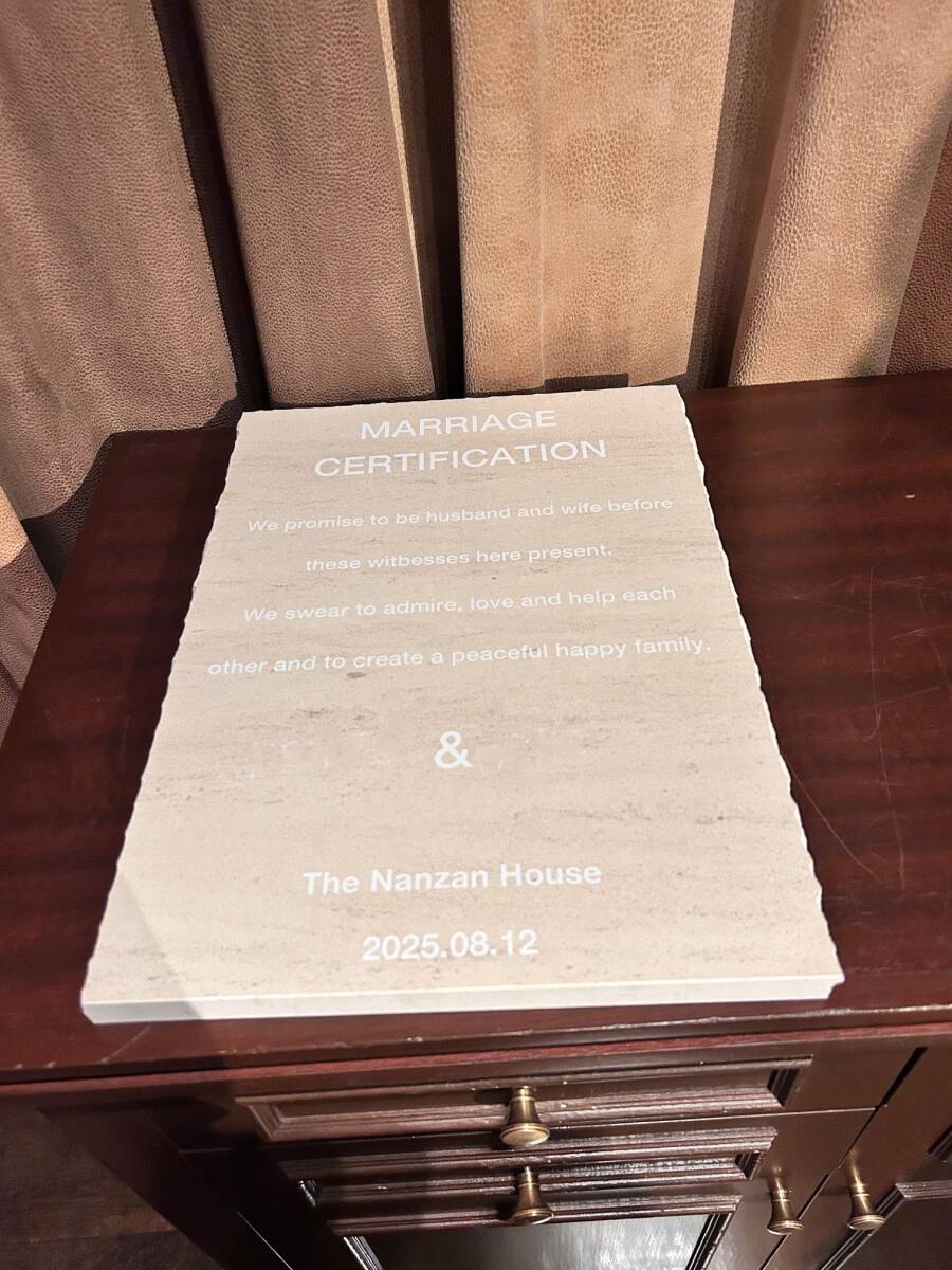 オリジナルの天然大理石の高級な結婚証明書は、おしゃれなウェディングの演出に、お二人の記念に、また、結婚式後も、お部屋に飾るインテリアにも素敵です。