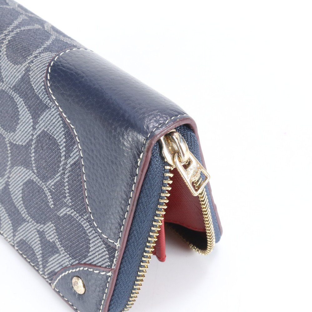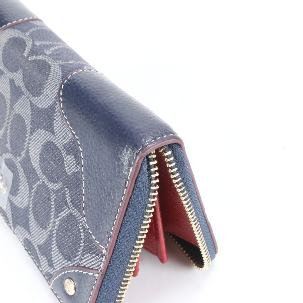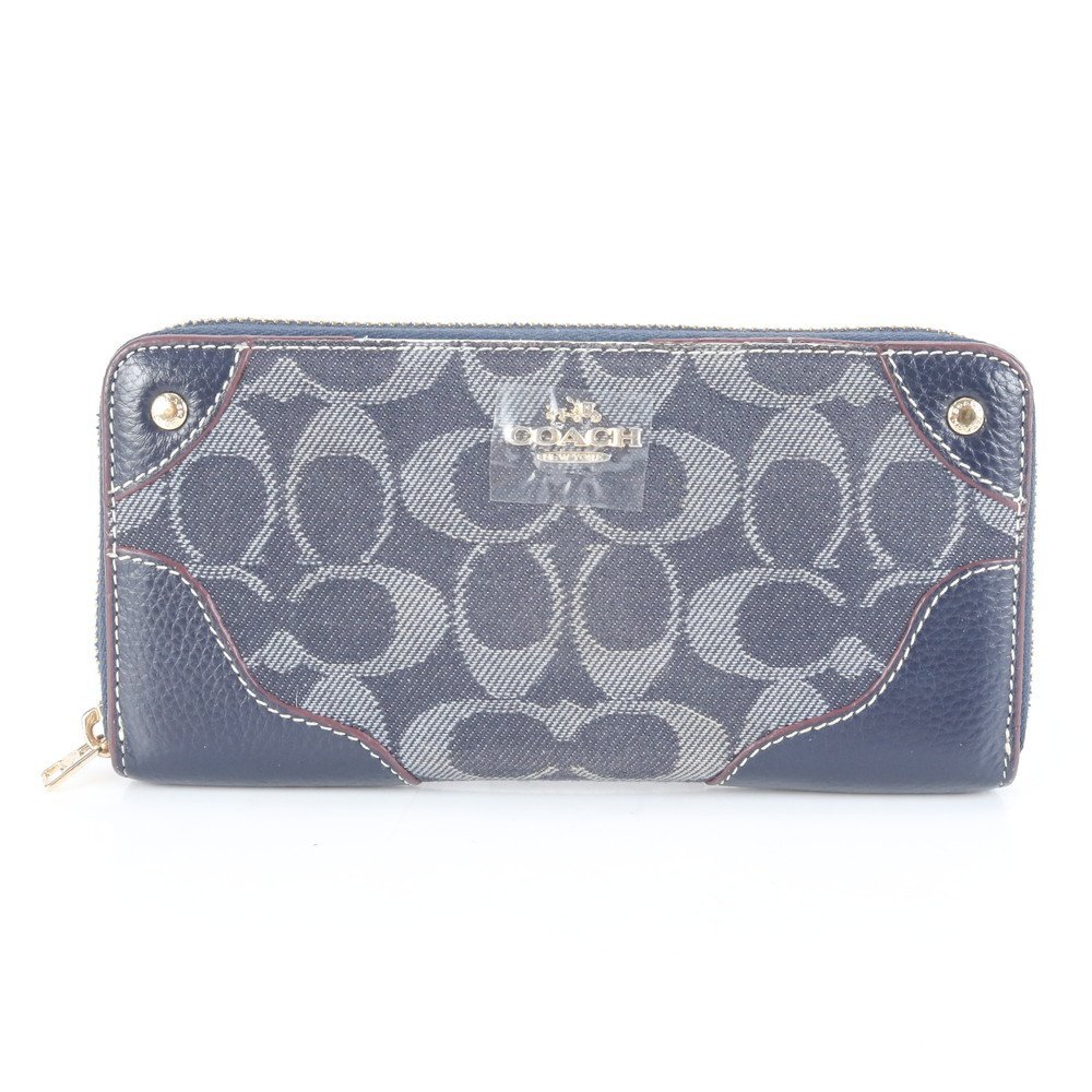 ■美品■コーチ■シグネチャー デニム レザー 長財布 ロング ウォレット ラウンドファスナー 53769 二つ折り レディース ECE CH6-1