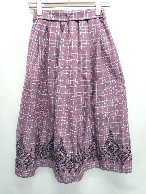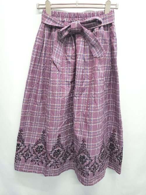 ◇ ◎ ⊆ axes femme アクシーズファム チェック柄 ロング丈 フレア スカート サイズF パープル レディース E