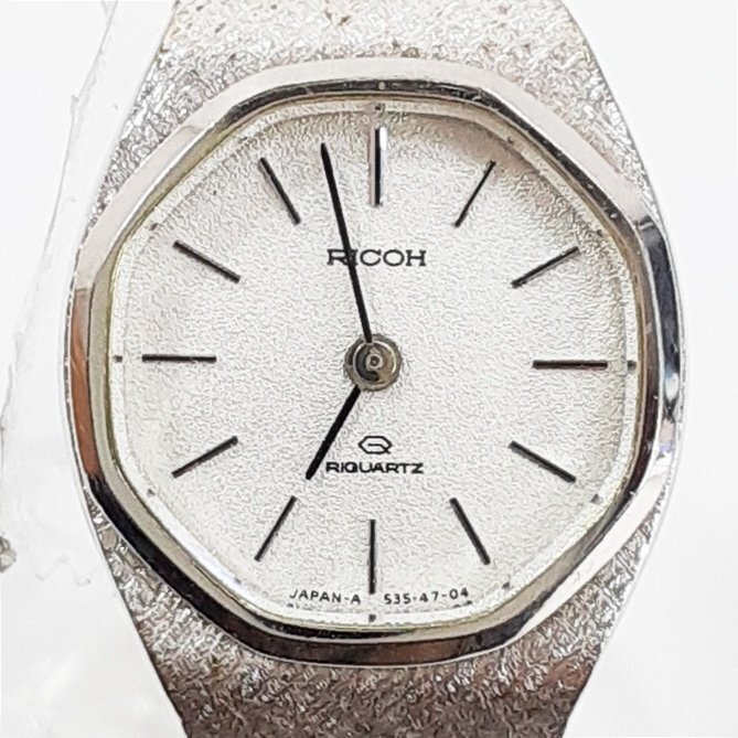 RICOH RIQUARTZ 535026 不動。 ベルトに変色あり。 ■動作:不動 ■竜頭:ボタンあり ■風防の傷:若干小傷あり ■腕回り:約15㎝ ■ケース幅(竜頭含まず):約2.1㎝ その他気になる所がございましたら入札前にご質問頂きます様お願い致します。 また注意事項は必ずお読みになってからご入札をお願い致します。 保証なしとなりますがレターパックプラスでの発送も可能です。 ※レターパックプラスでの発送は厚さの関係上、 簡易的な包装となり郵送時の破損等が発生しやすくなります。 ご承知いただける方のみ選択下さい。 | |