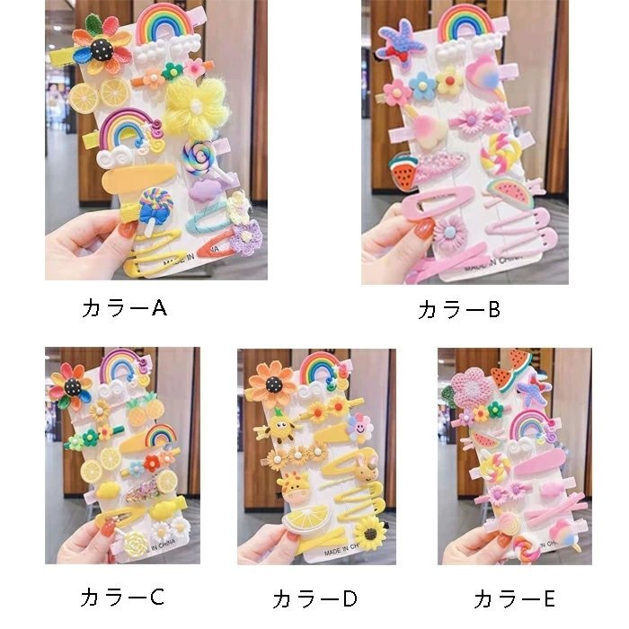 ヘアピン子供用 ヘアクリップ 前髪クリップ かみどめ 子供向け 多種類 可愛い お姫様 かわいい おしゃれ 14点セット ☆カラー/5色選択/1点