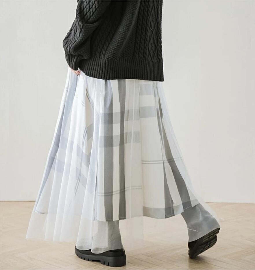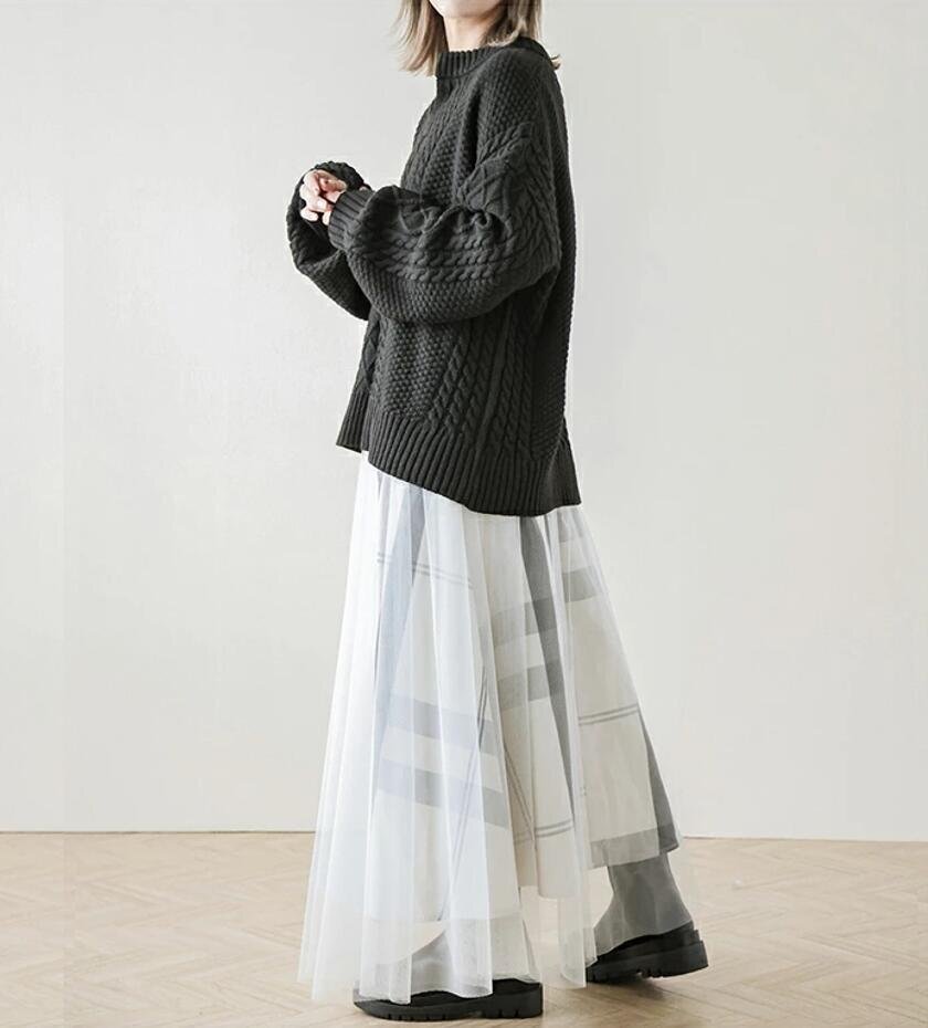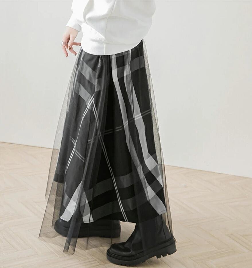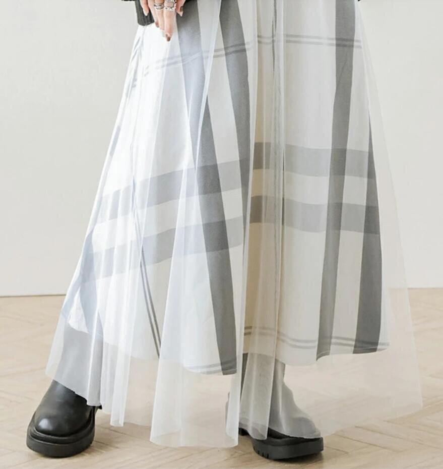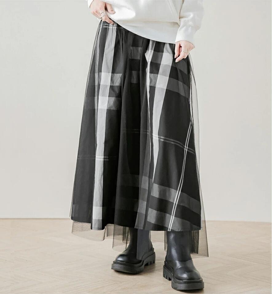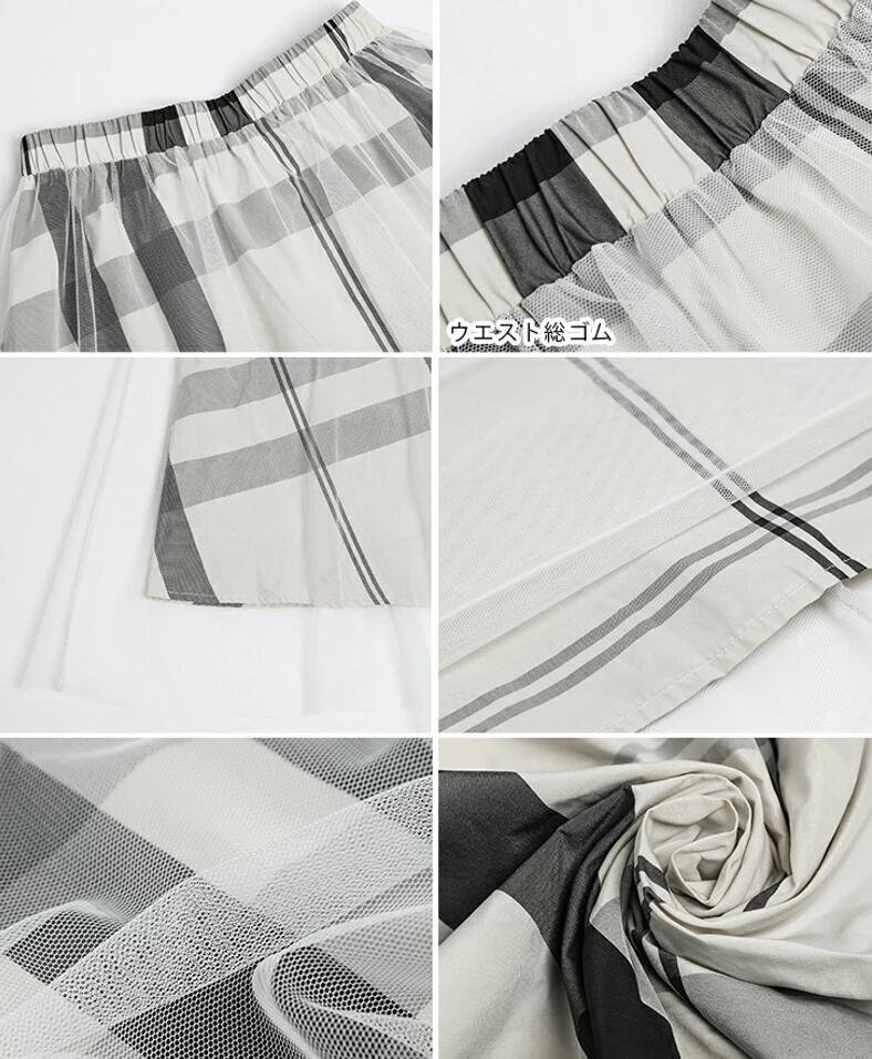 春夏新品 スカート ロング丈 チェック柄 フレアスカート Aライン レディース マキシ丈 ボトムス 大人★★黒 /Lサイズ