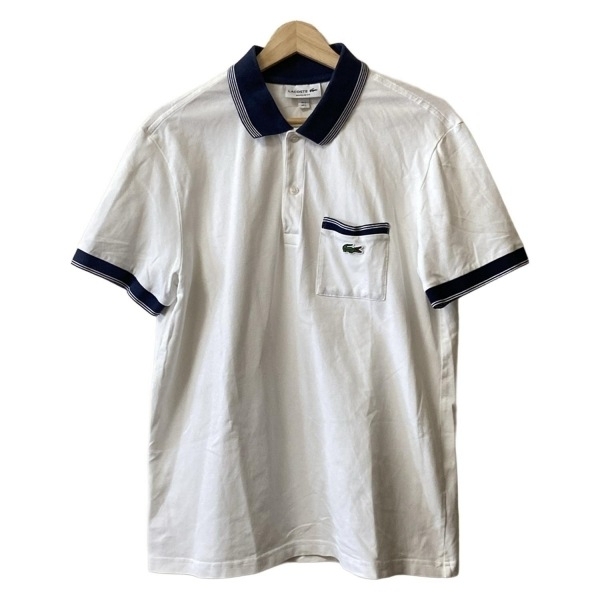ラコステ Lacoste 半袖ポロシャツ サイズUS L - 白×ダークネイビー メンズ トップス