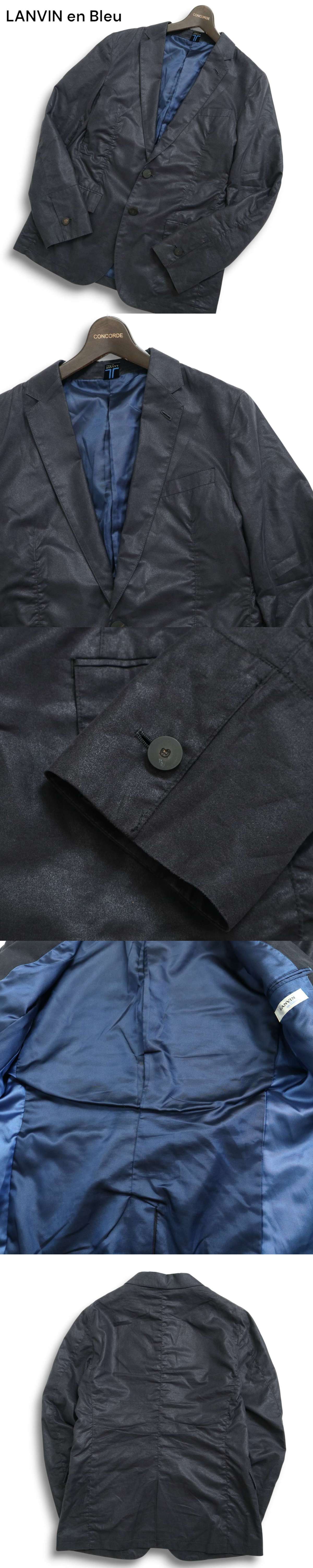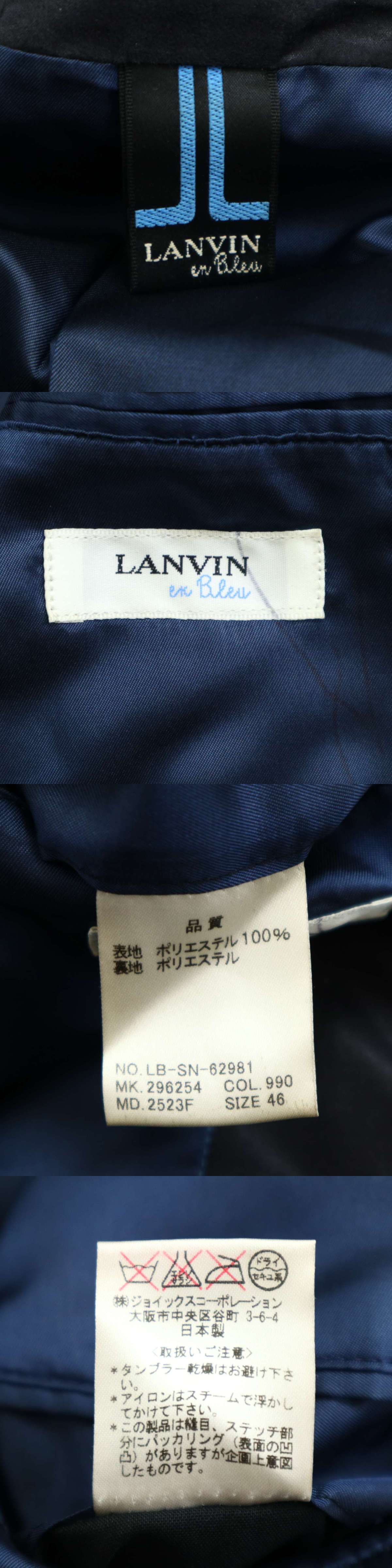LANVIN en Bleu ランバン オン ブルー 秋冬 総裏 フェイク スウェード★ テーラード ジャケット Sz.46 メンズ 黒 薄黒