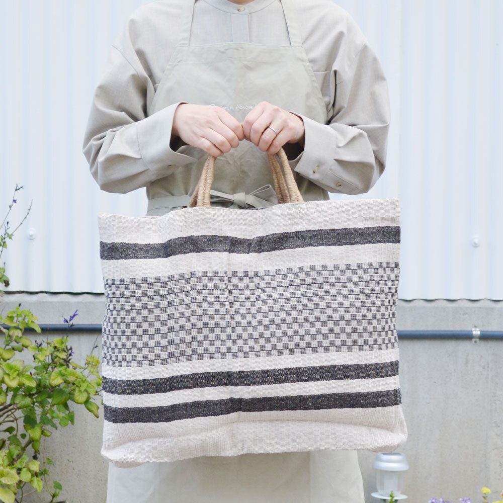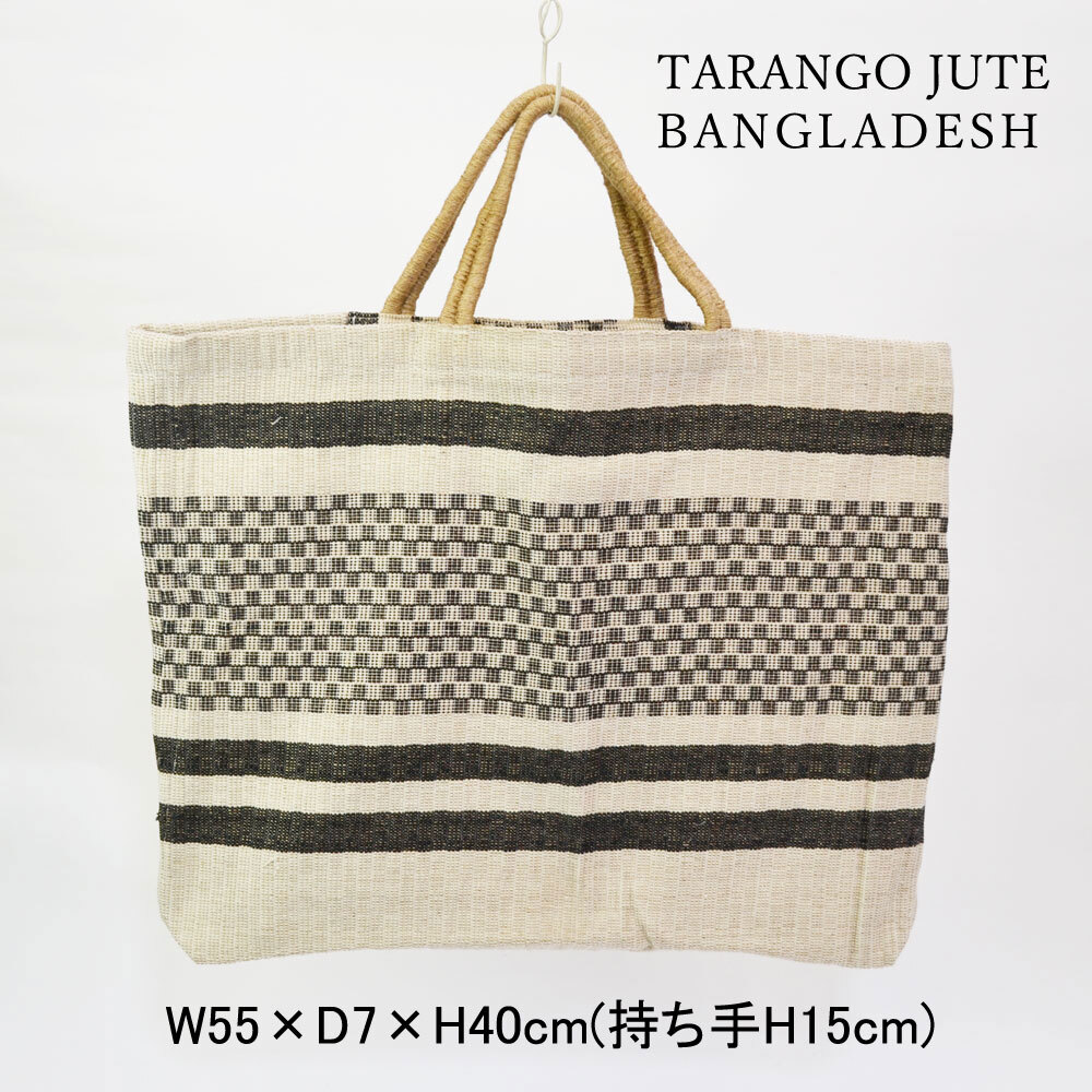 TARANGO ジュート ビッグトートバッグ 白地 ボーダー