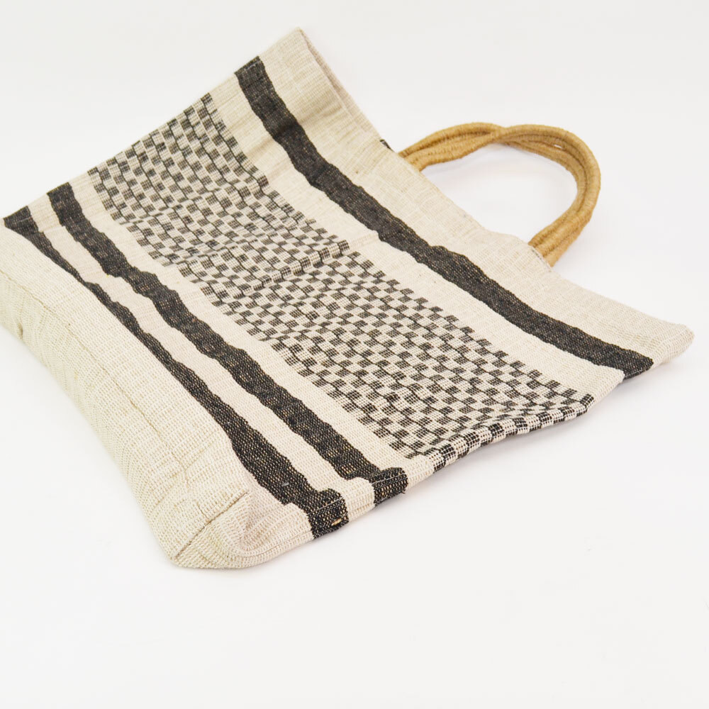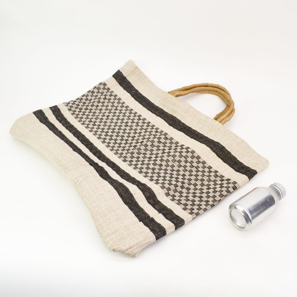 手機、機織機で丁寧に織りあげられたジュートバッグ。