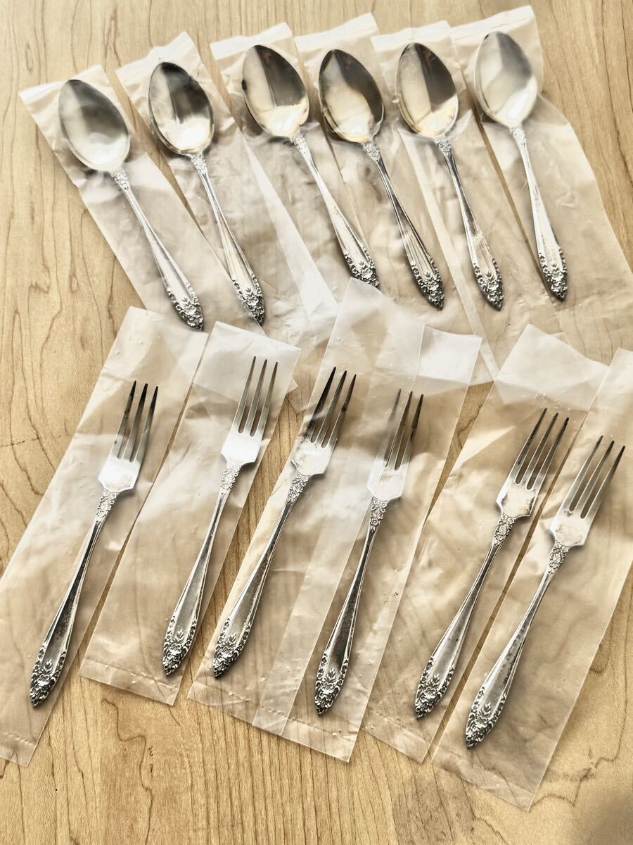 未使用品ですが、外装にくすみ・スプーンフォーク共に一部変色やくすみあります。