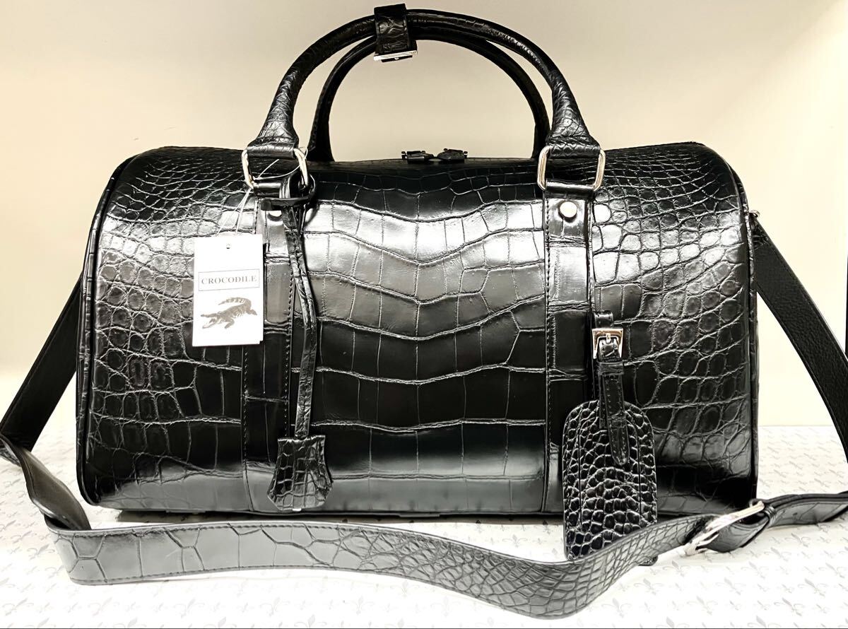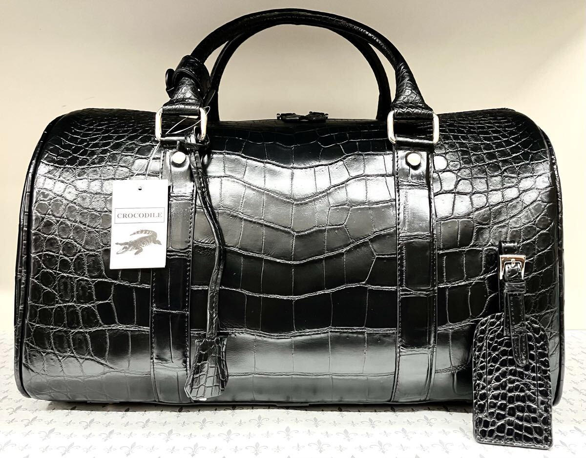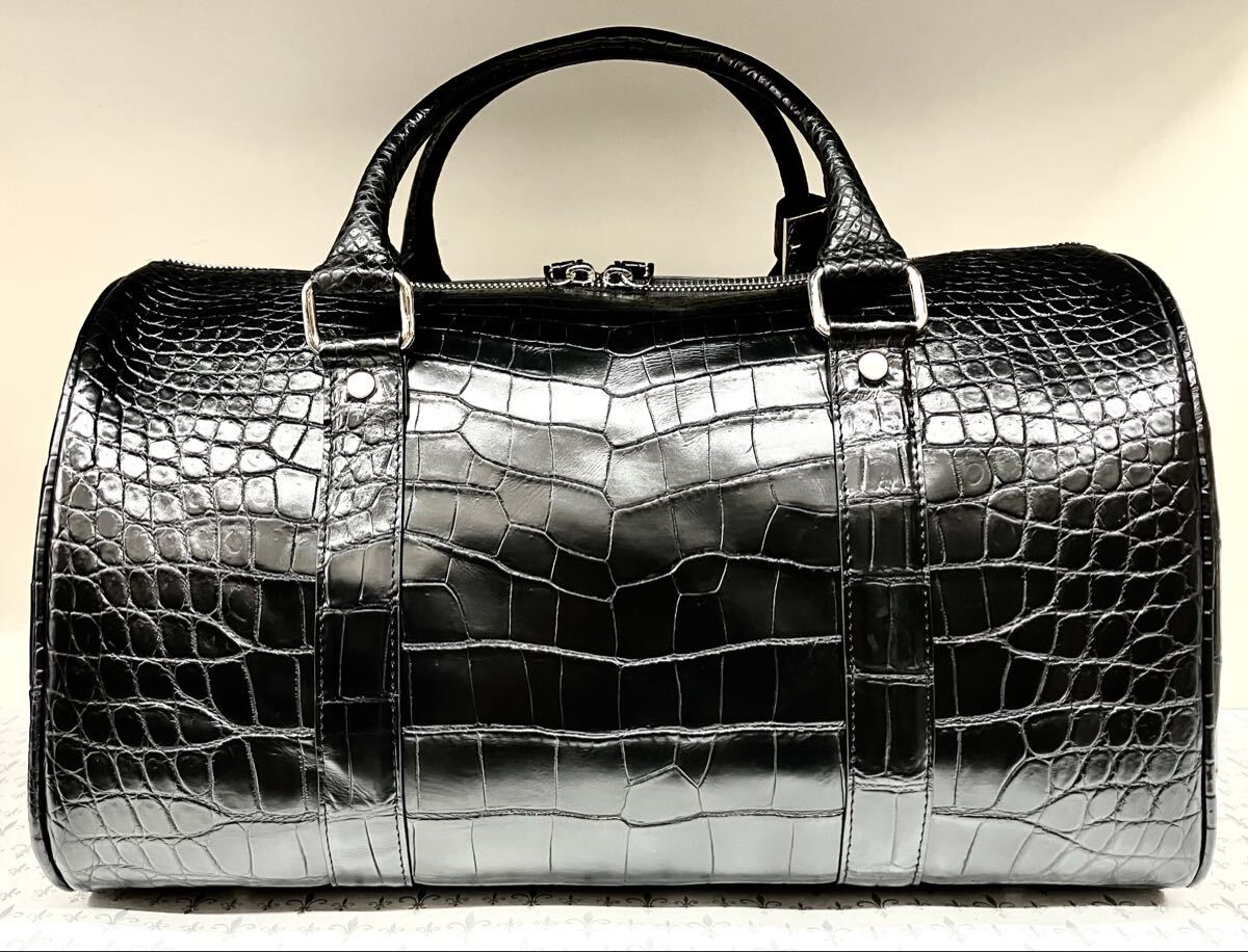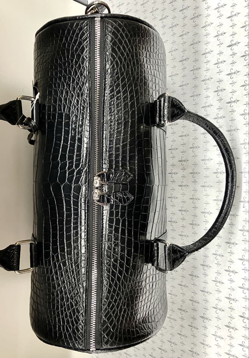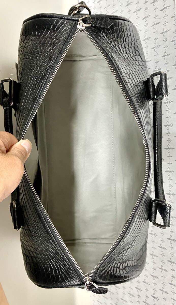 高級クロコダイル、ワニ革使いの手提げ&ショルダー付きボストンバックです。