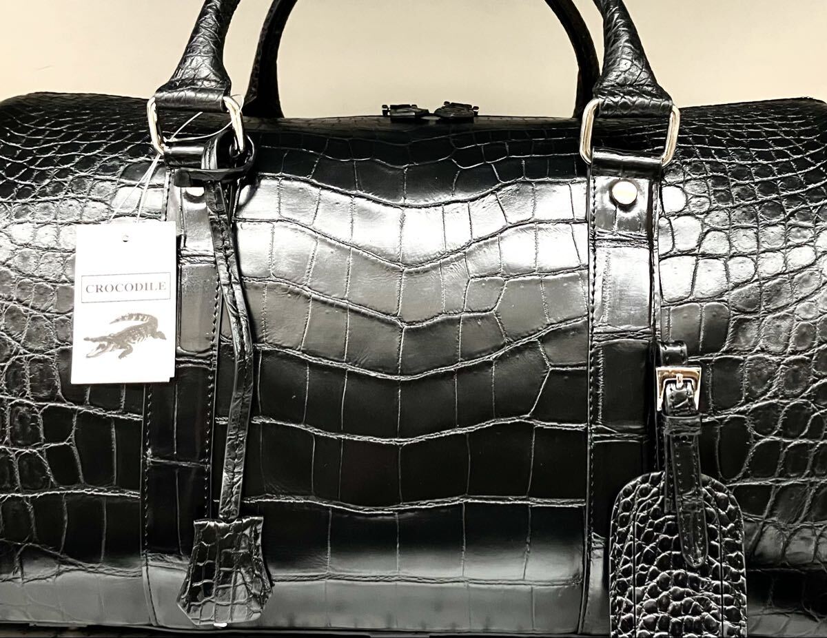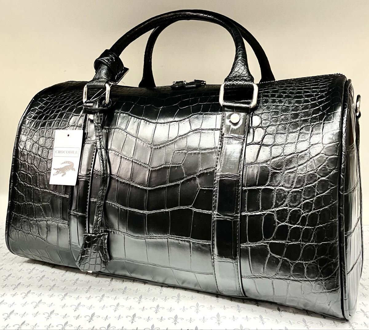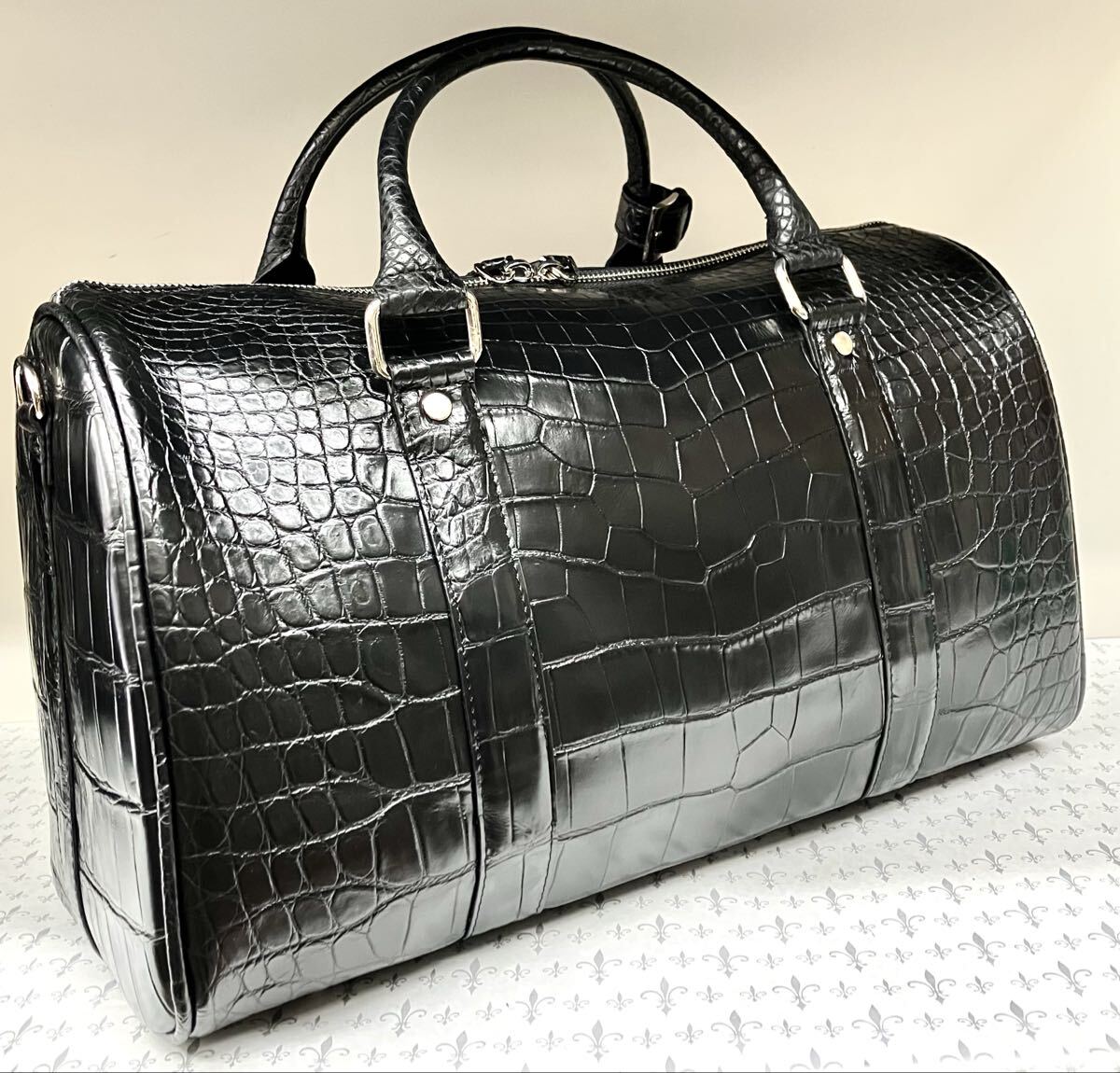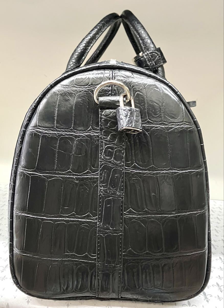 高級クロコダイル、ワニ革使いの手提げ&ショルダー付きボストンバックです。