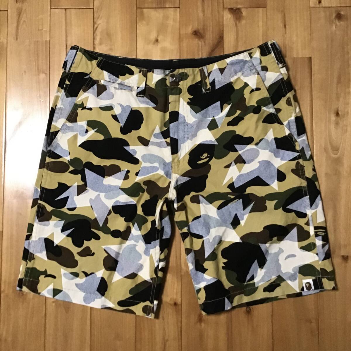 a bathing ape BAPESTA 1st camo yellow ハーフパンツ Lサイズ です★