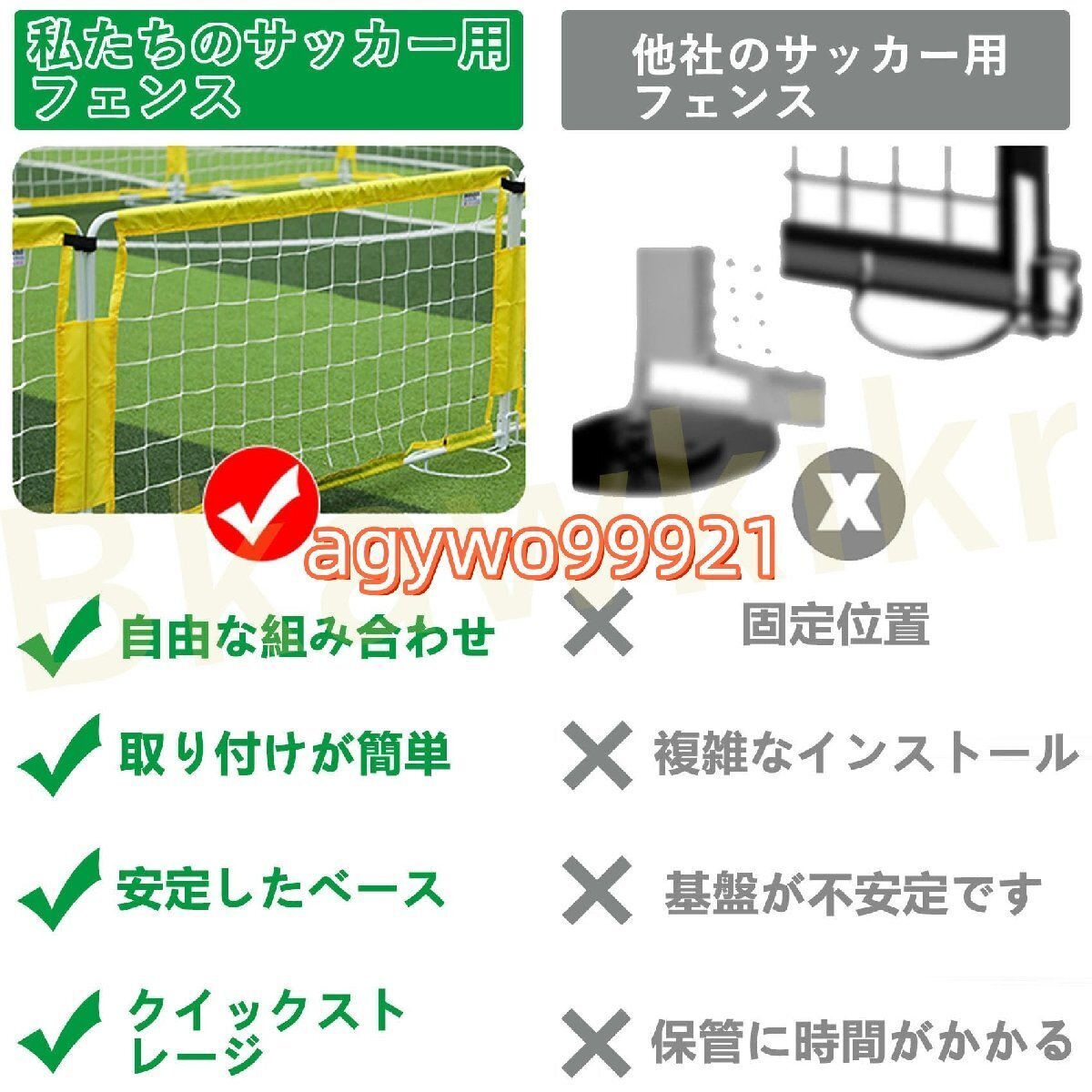 サッカーフェンス 拡張可能 柔軟 サッカーフィールドフェンス 子供用プレイサークル サッカーフェンス 安全アクティビティセンター 組み立てと分解が簡単 パネルセット 屋内外用 練習する フットボール トレーニング フェンス、サッカー リバウンド ネット、子供 こども用 一般用特徴:1. 自由な組み合わせ、複数の配置方法モジュール設計により、ポリゴンや滑走路などの組み合わせに対応し、競技、トレーニング、幼稚園の活動に適した会場の形状を選択できます。2. 取り付けが簡単で、すぐに保管できますバックル構造は取り付けと分解が簡単で、フィールドから素早く分離し、ワンクリックで保管できるため、試合後も心配する必要はありません。3.高弾性無結節メッシュ、耐久性と安全性高強度ポリエステルメッシュ生地はボールの漏れを防ぎ、ボールがつまづきません。強い靭性と長寿命を備え、あらゆるゲームをスムーズに進行します。4. 厳選されたスチール、安定したベース高品質のスチールと丸いベースのデザインにより、風による転倒を防ぎ、しっかりとした保護を提供し、イベント環境をより安全で信頼できるものにします。5. さまざまなシナリオに適しており、ギフトが豊富ですフェンスのサイズはさまざまなシナリオに適しており、さまざまなイベントを簡単に制御できます。ゲームをよりプロフェッショナルにするチームのユニフォーム、審判の笛、サッカーが付属しています。製品パラメータ:サイズ:6*4.5M7.5*4.5M9*4.5M9*7.5M12*7.5M15*10.5M色: イエローパッケージ内容: サッカーフェンス、サッカーゴール、チームユニフォーム、ホイッスル、サッカー。ご注意:こちらの商品は大型商品のため複数梱包での発送となりますので、同時に到着しない場合はしばらくお待ちください。
