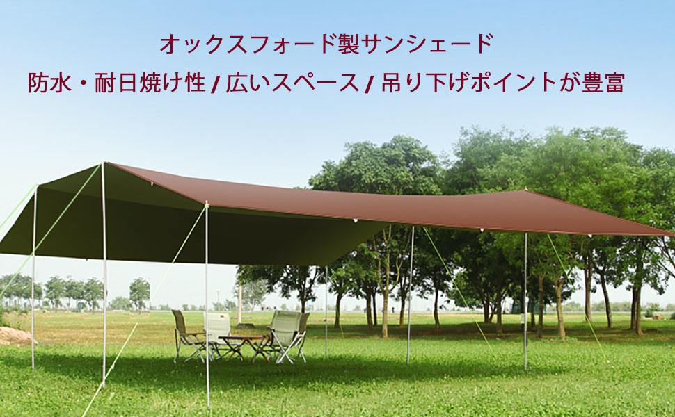 【せっけい】より安全で丈夫な避難所を提供するために、オックスフォードの布の上の20のすべての固定点は補強されています。その上、すべての固定点は二重強化ステッチを使用しています。ゆとりあるサイズ設計でテントやチェアも楽に置ける。グループやファミリーキャンプでも快適な日陰空間を確保します。
