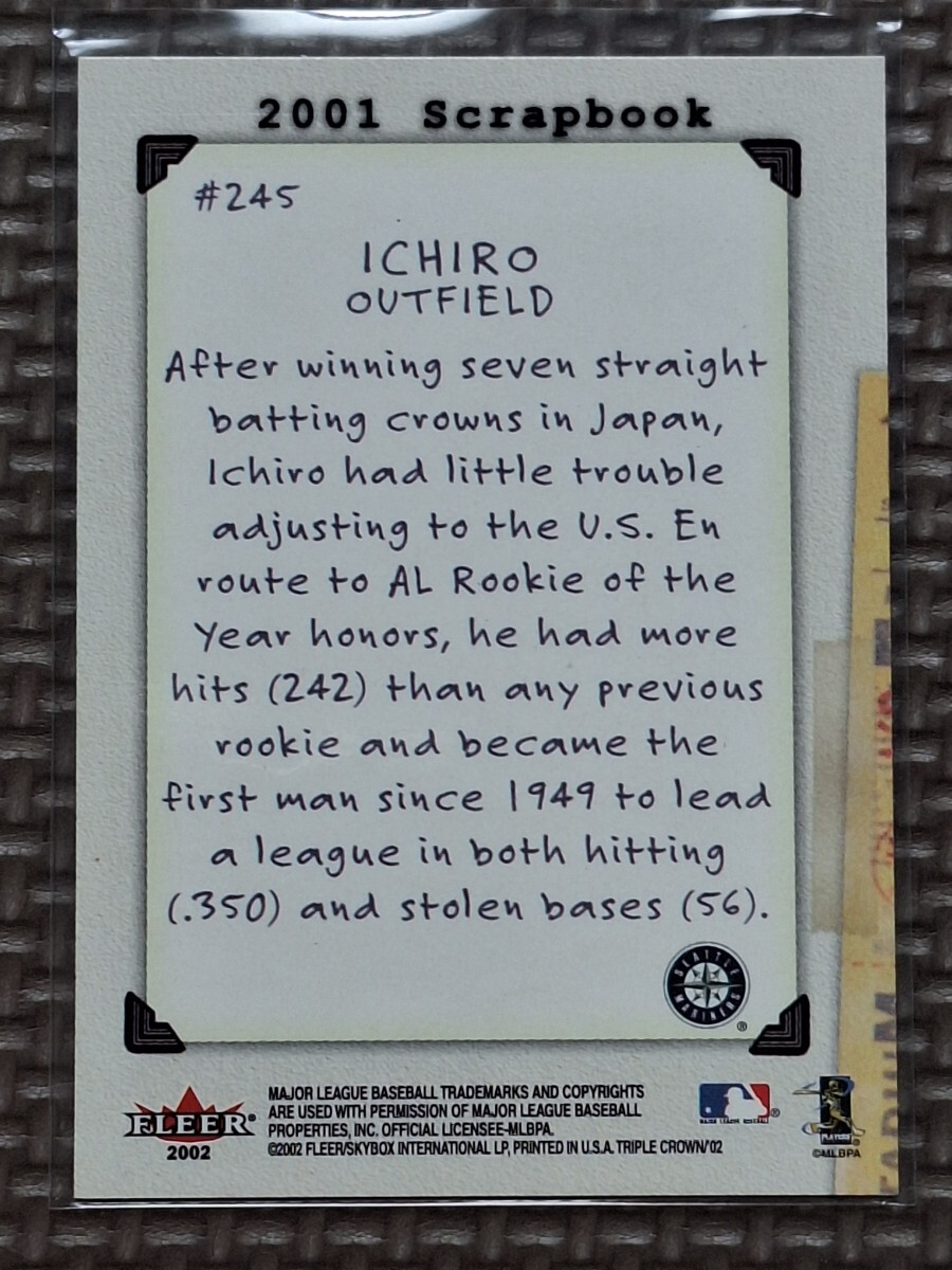 2002 Fleer Triple Crown #245 ICHIRO SUZUKI 2001 Scrapbook AL Rookie Of The Year Seattle Mariners Orix BlueWave
