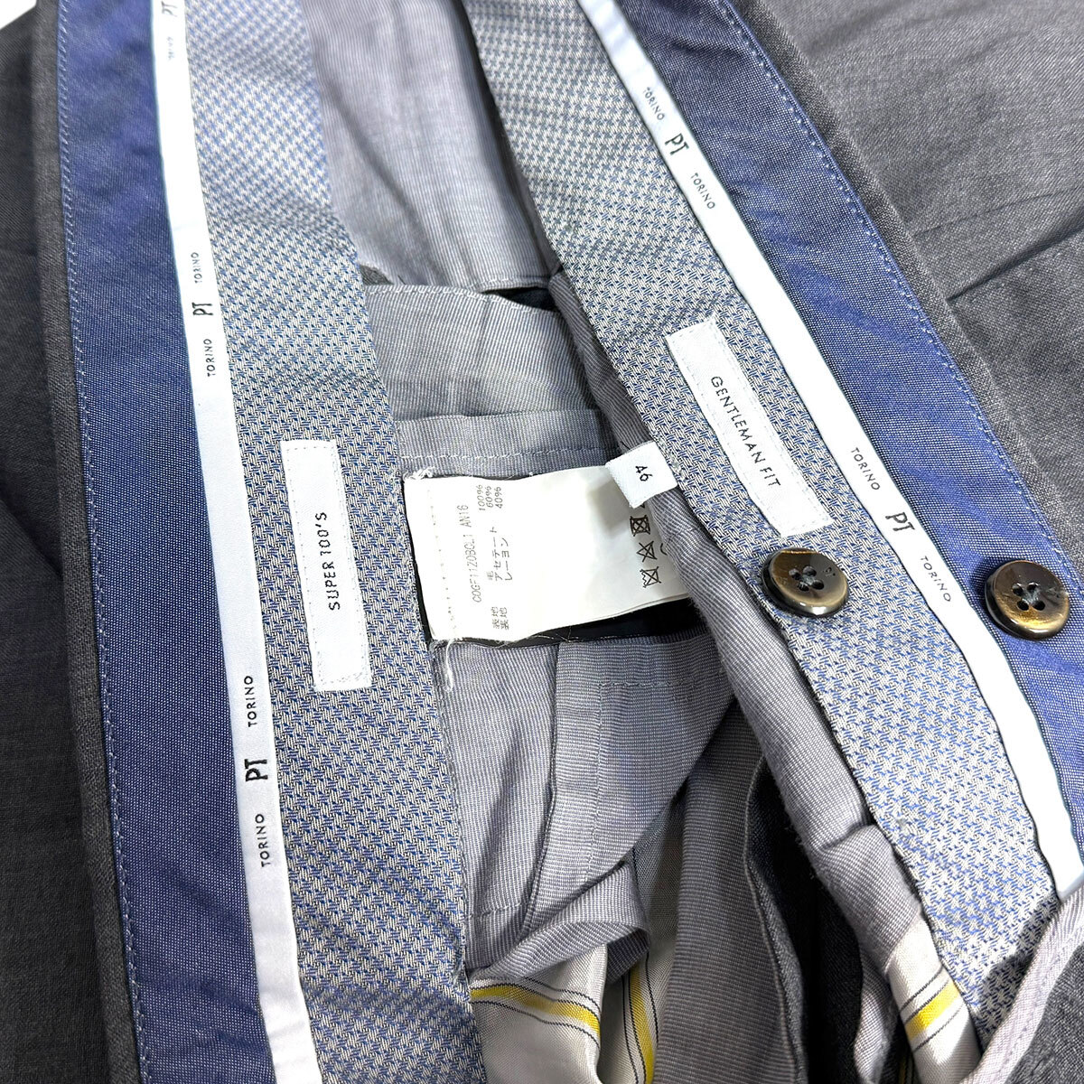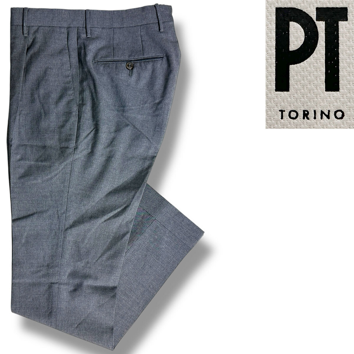 J5163 美品 PT torino ジェントルマンフィット 1プリーツスラックス チャコールグレー 46 PT01 トリノ