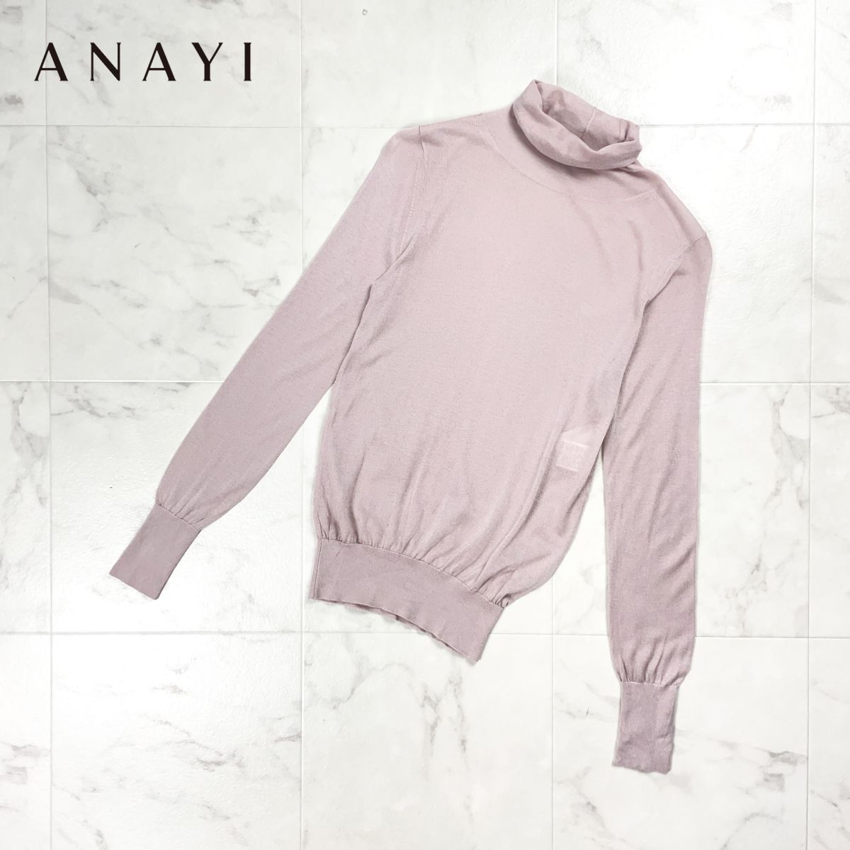 美品 ANAYI アナイ カシミヤ混 天竺タートルネックプルオーバーニット 長袖セーター 薄手 レディース ピンク サイズ36*FD172