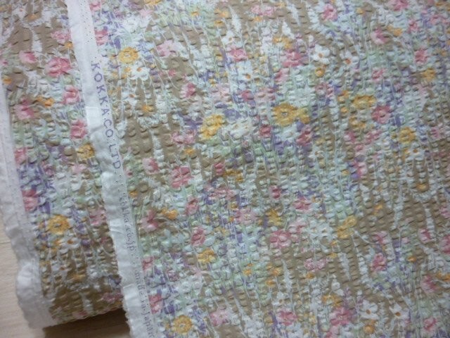 4m  リップル草花柄/ベージュ地