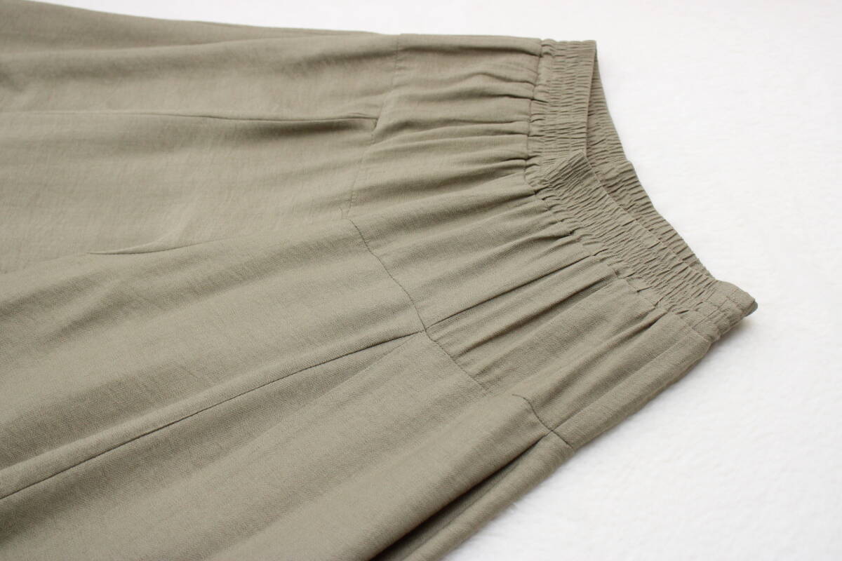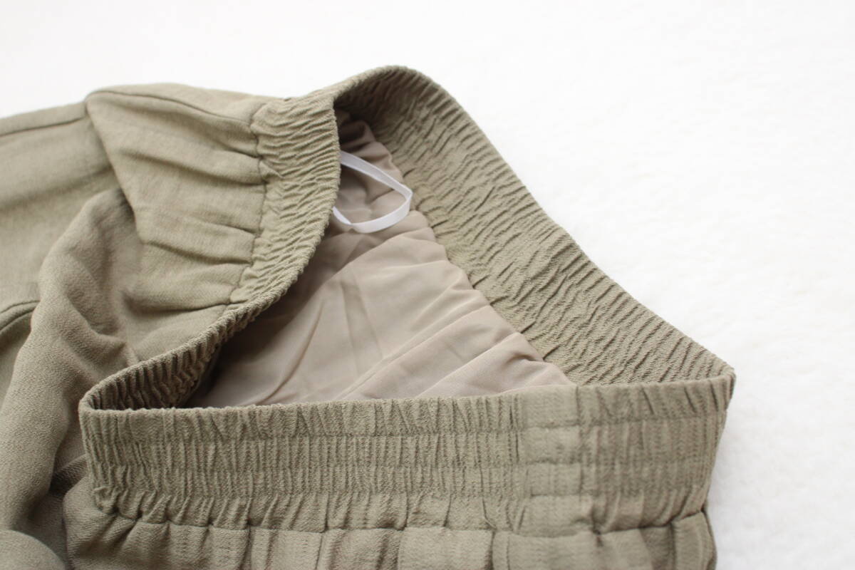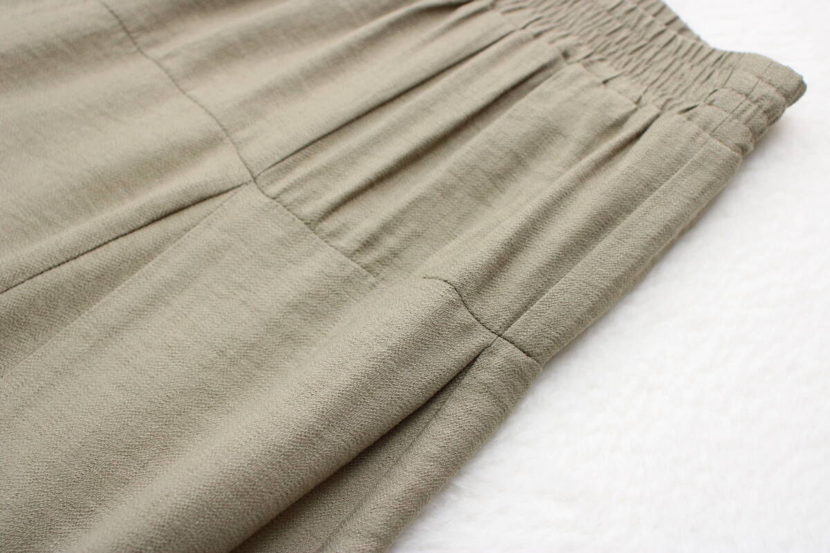2931 新品 ウエストゴム麻調パネルスカンツ オリーブFサイズ 定価¥12,000+税