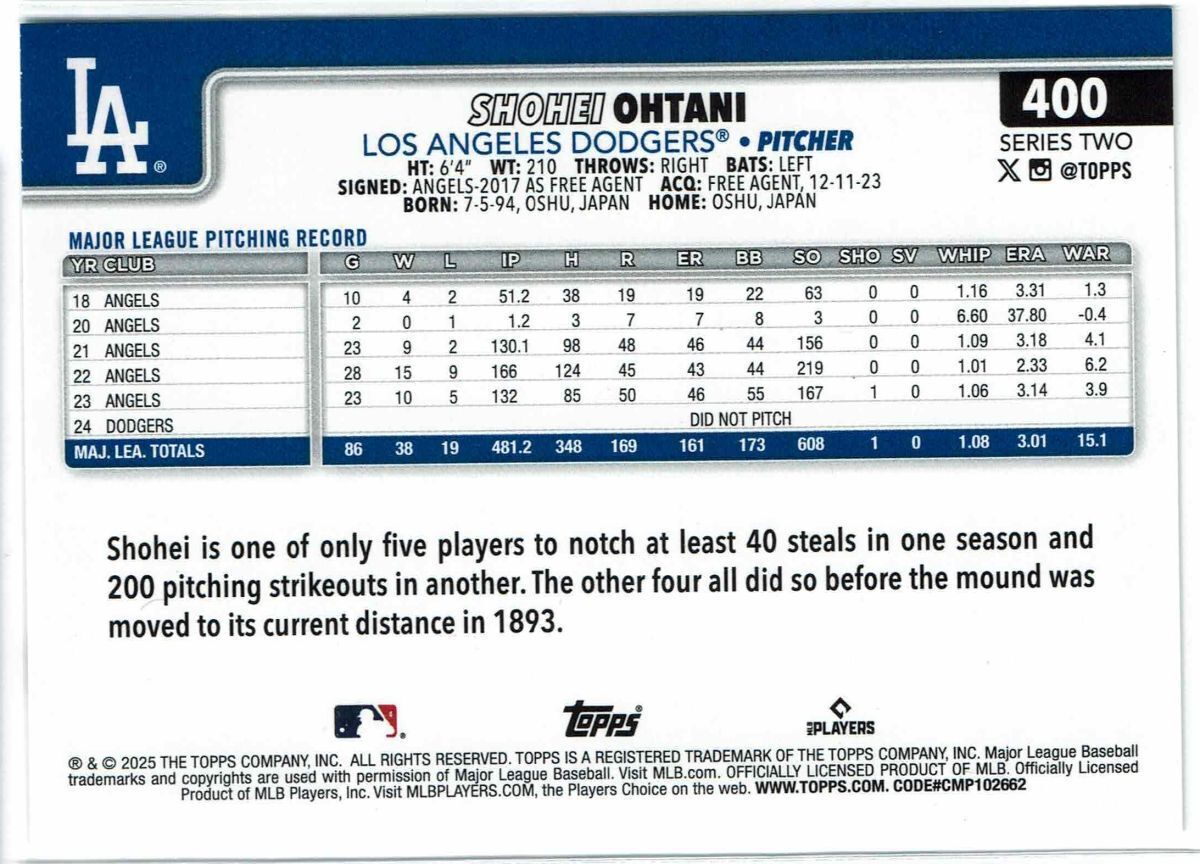 大谷翔平 2025 Topps Series 2 #400 ベースカード - Dodgers ドジャース