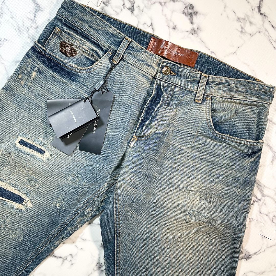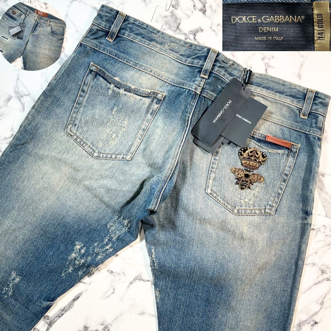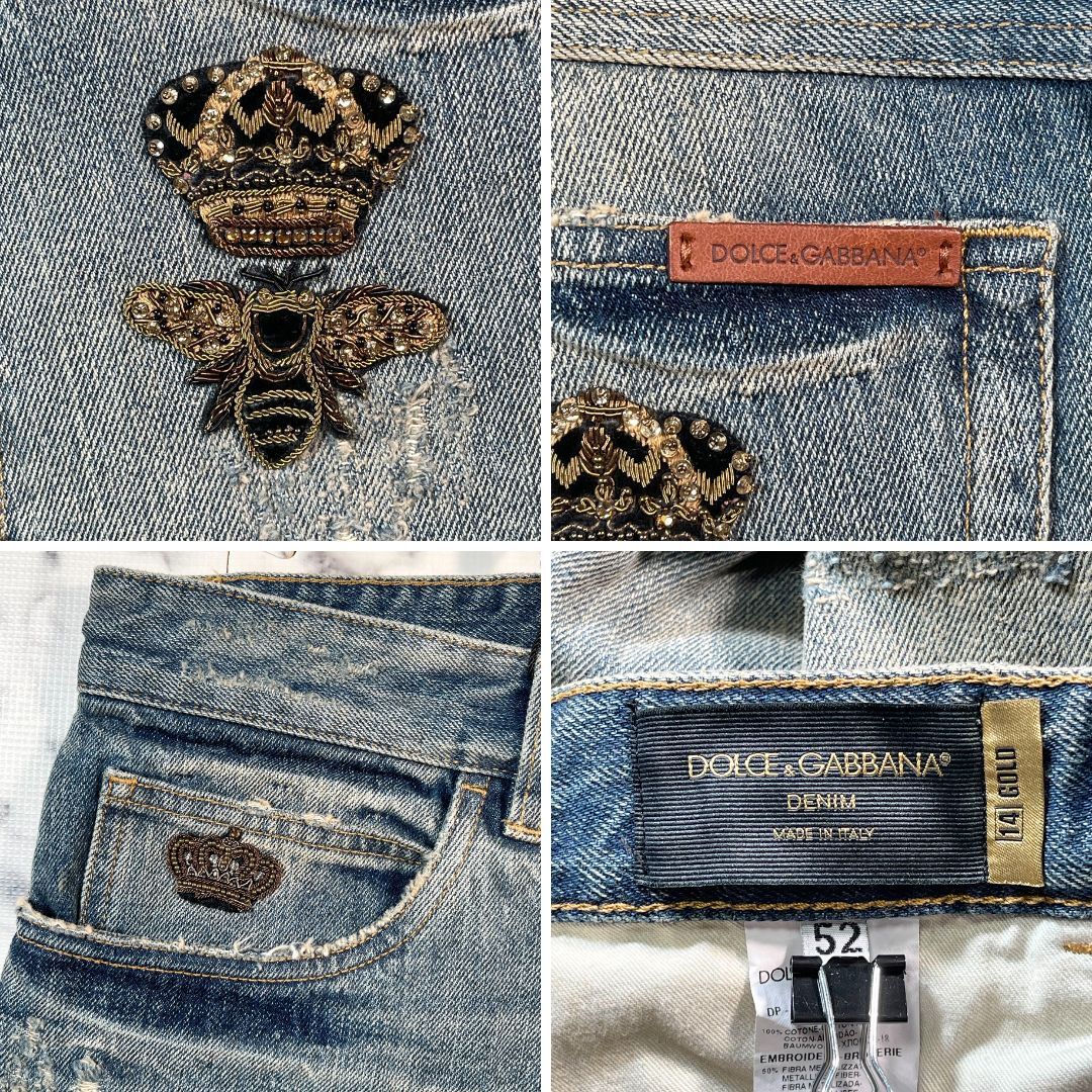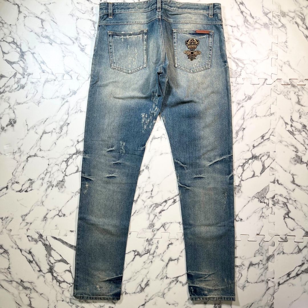【新品未使用タグ付き】蜂&王冠/現行革タグ/52(2XL) ●DOLCE&GABBANA インディゴ ブルー 青 デニム パンツドルチェ&ガッバーナ クラウン
