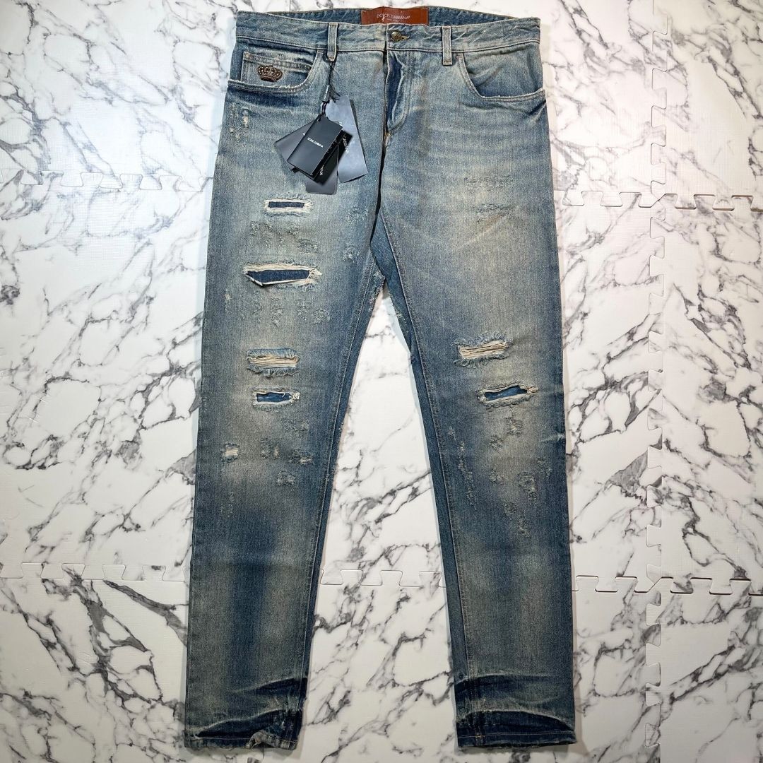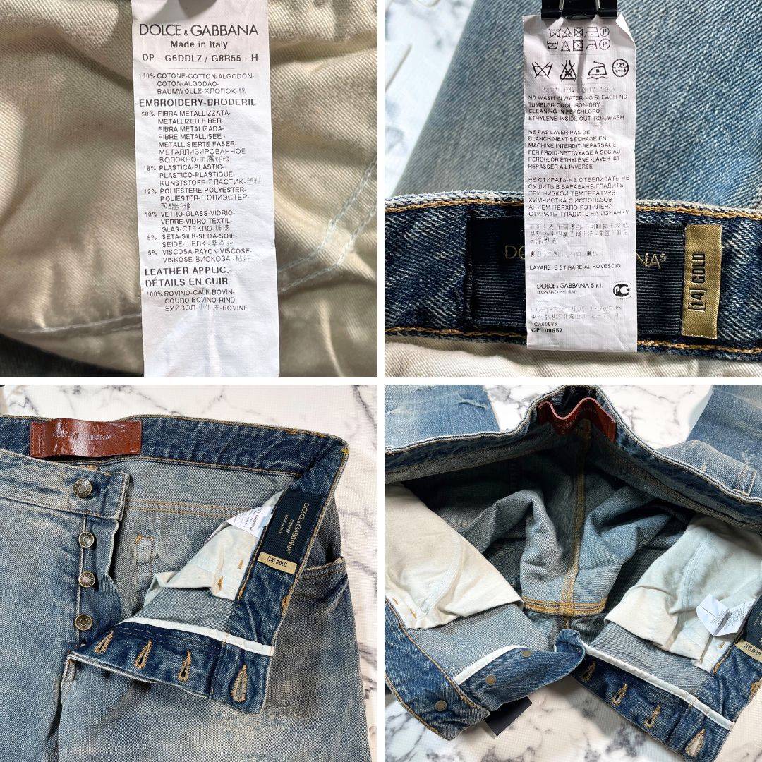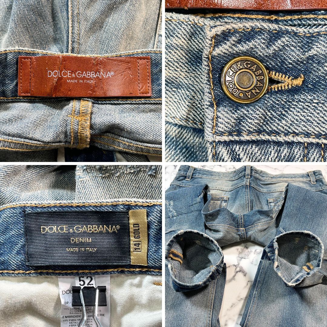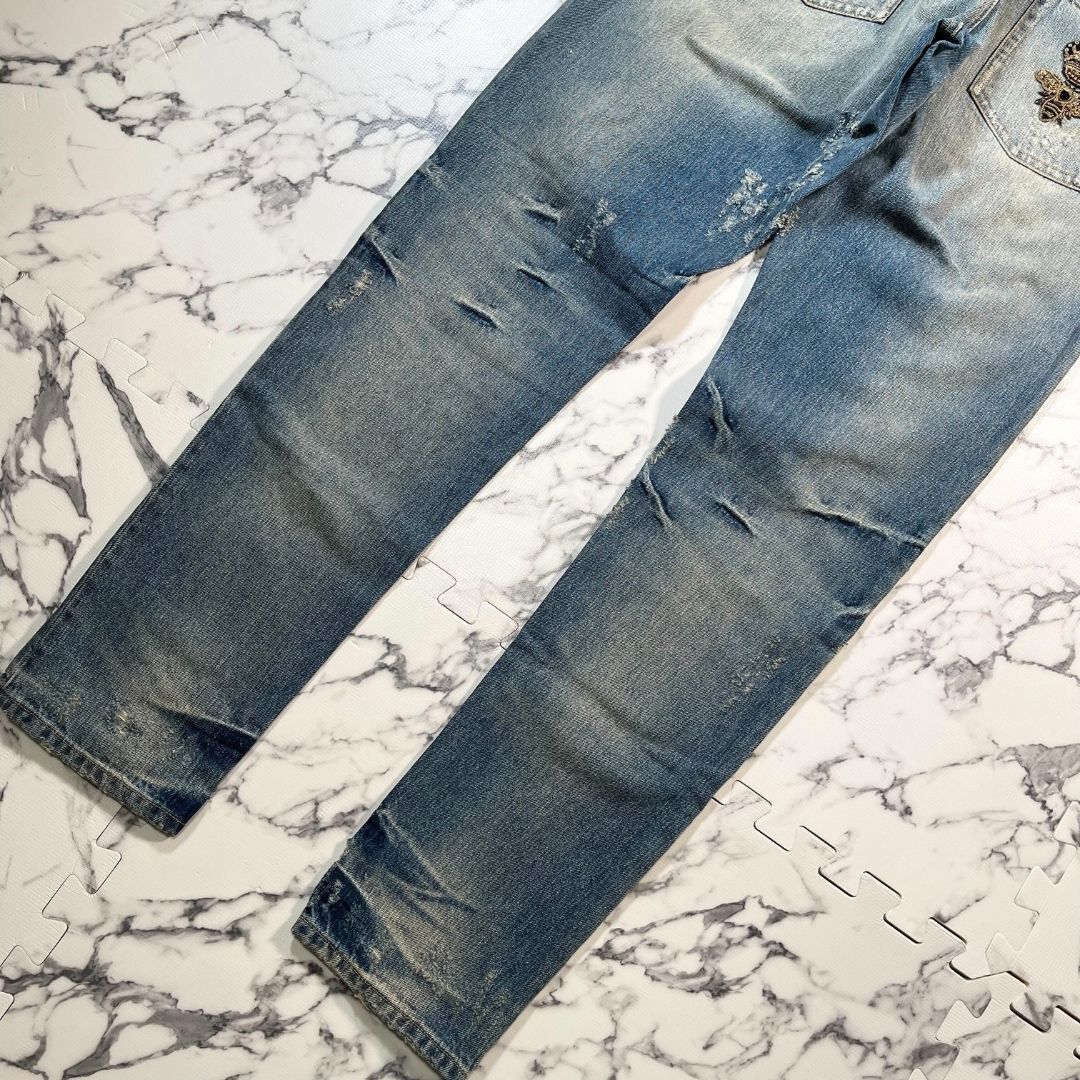 【新品未使用タグ付き】蜂&王冠/現行革タグ/52(2XL) ●DOLCE&GABBANA インディゴ ブルー 青 デニム パンツドルチェ&ガッバーナ クラウン