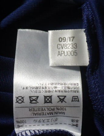 首内側白布タグに、 CV8233 APU005  09/17 と記載、2017年9月製、