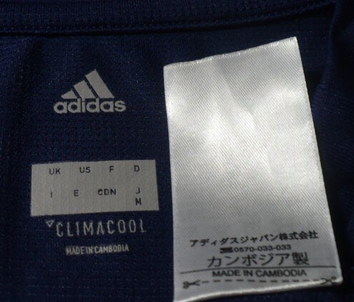 アディダスジャパン(株)製       MADE IN CAMBODIA(カンボジア製)
