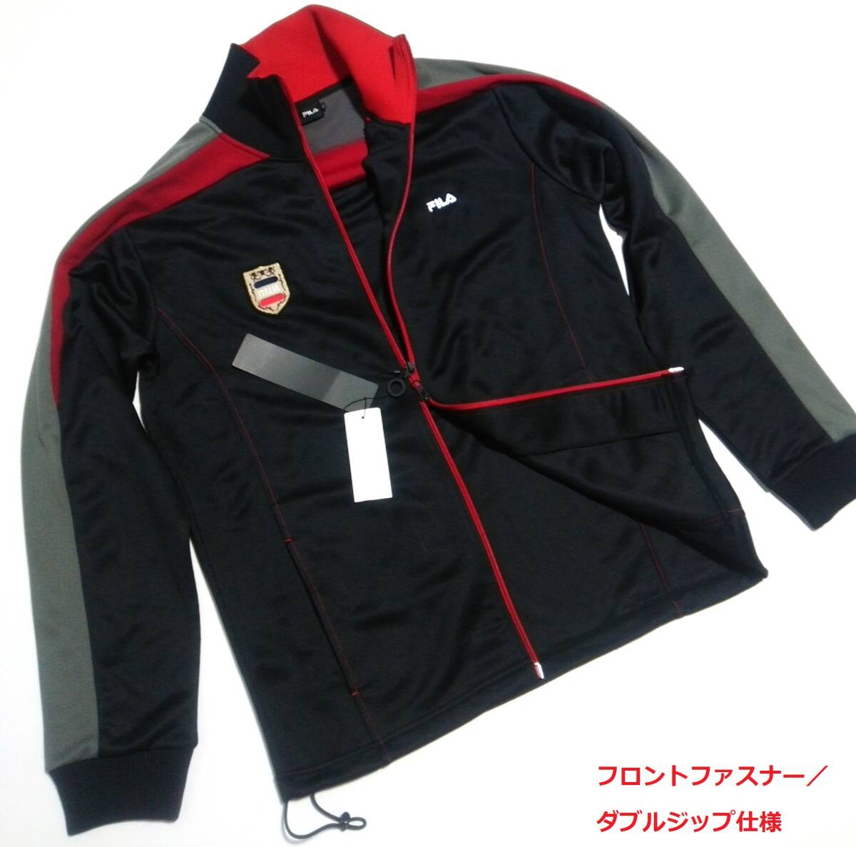 カラー切替で変化を付け、各所のロゴがデザインアクセントのジャージジャケット。