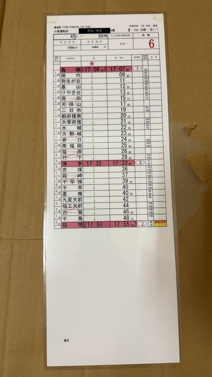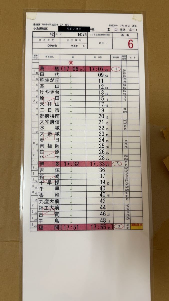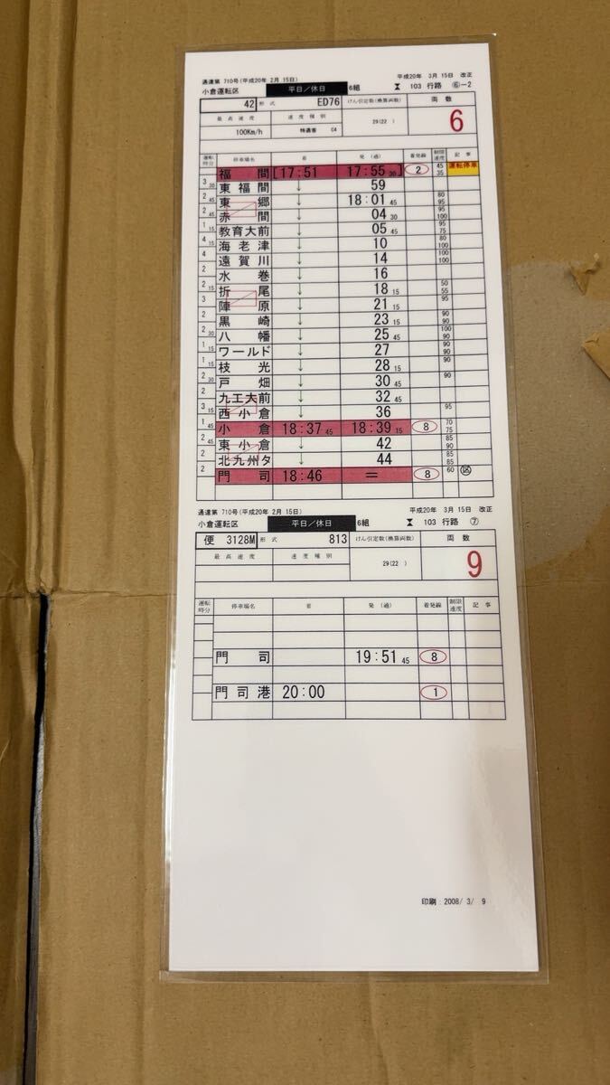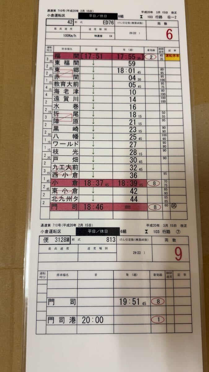 運転士時刻表 スタフ 福間〜門司 現状渡し品
