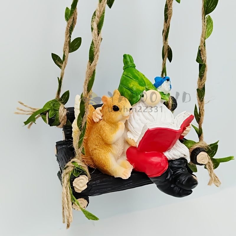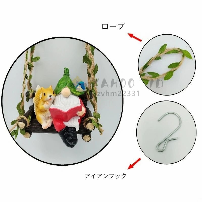 可愛い小人とリスがブランコに乗るガーデンオーナメントが、あなたの室内や屋外を素敵に演出します。愛らしいデザインと存在感で、玄関やリビング、ダイニングにぴったり。樹脂製なので耐久性があり、雨風にも強く、ガーデニングやインテリアのアクセントとしてお楽しみいただけます。どんな場所でも愛らしさを添えて、来訪者を和ませることでしょう。