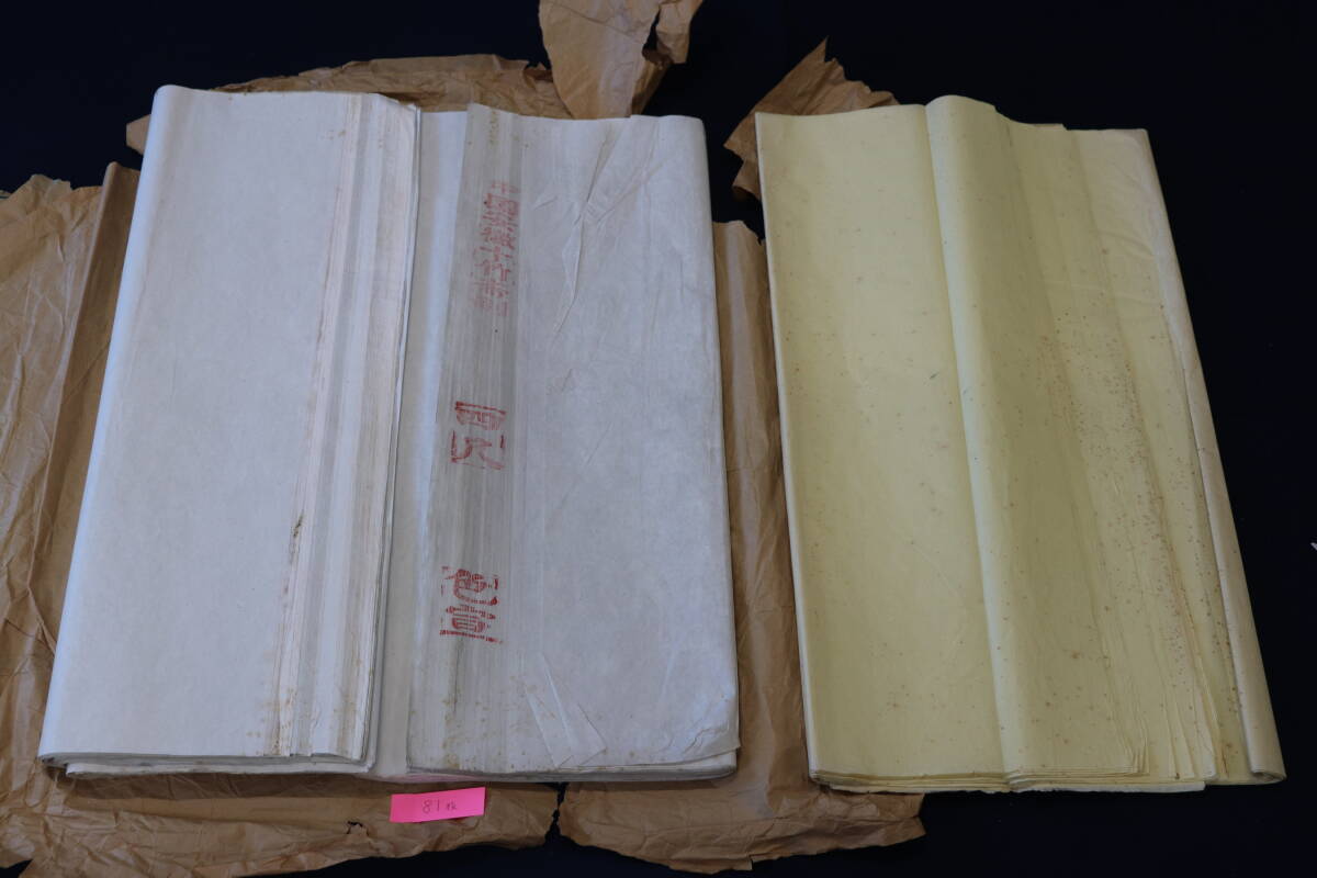 | 商品説明 | 商品説明: 中国安徽十竹斎制 四尺 色宣 81枚 他 黄色宣紙 18枚 合計99枚2.6㎏ 加工紙 色画仙、です。 古いものになりますので、一部に汚れ、スレ、シミ、折れ、やぶれ等ございます。 ※表記の枚数につきまして、慎重に数えてはおりますが、 数枚の誤差はあるものとご認識の上、入札をお願いいたします。 『注意事項』 ・ご入札の際は写真、商品説明を十分ご確認の上、慎重にご入札下さい。 ・記載しています在銘や時代についても、写真画像にて十分に確認いただき、ご自身で納得のいただける物のみにご入札お願いいたします。 ・時代物、古いものが多いためため、細かなキズや汚れに神経質な方や、中古品を気になされる方は、ご入札をご遠慮ください。 『真作保証』 ・作家作品につきましては、原則、真作保証・真筆保証でございます。 ・万が一、落札していただいた作品が、作家の公式な鑑定機関を経て贋物・偽物と判断された場合は、ご連絡ください。鑑定証明を確認させていただき次第、作品返品受け取りのち、落札金額の全額と作品返送料をご返金させていただきます。 ・保証期間は、落札日より90日間とさせていただきます ・なお、当方の真作保証の根拠につきましては、公式な鑑定機関の保証書等が付くものを除き、当方の取り扱い経験等に由来するものであり、その証明を求められても、ご対応致しかねます。 『返品・キャンセル』 ・落札者様都合の返品は原則承りません。 ・ただし、商品説明の記載に明らかな誤りなど、当方に過失があると判断できるものにつきましては、誠意を持ってご対応させていただきます。その場合でも、必ず商品到着後1週間以内にご連絡下さい。 ・運送上発生した破損などのトラブルについては、当方で補償出来かねますので、運送会社様にお問い合わせ、ご対応をお願いします。 |