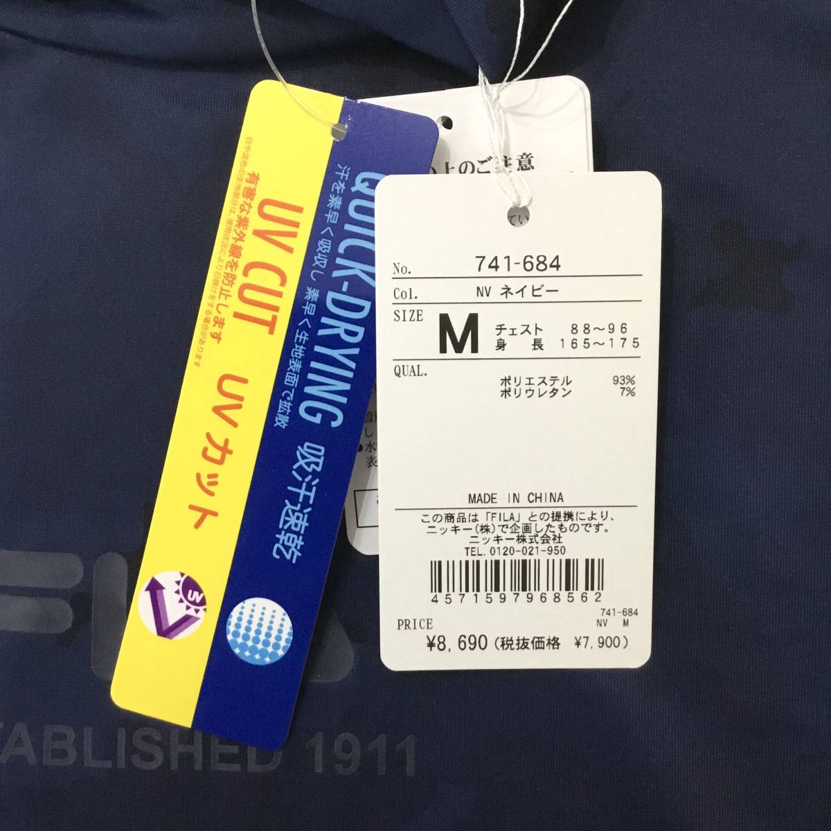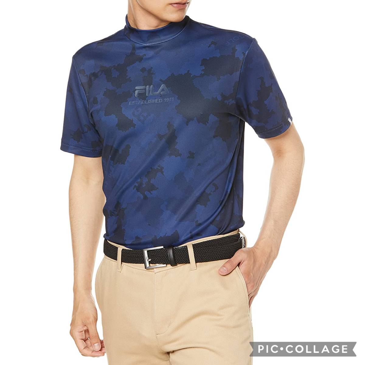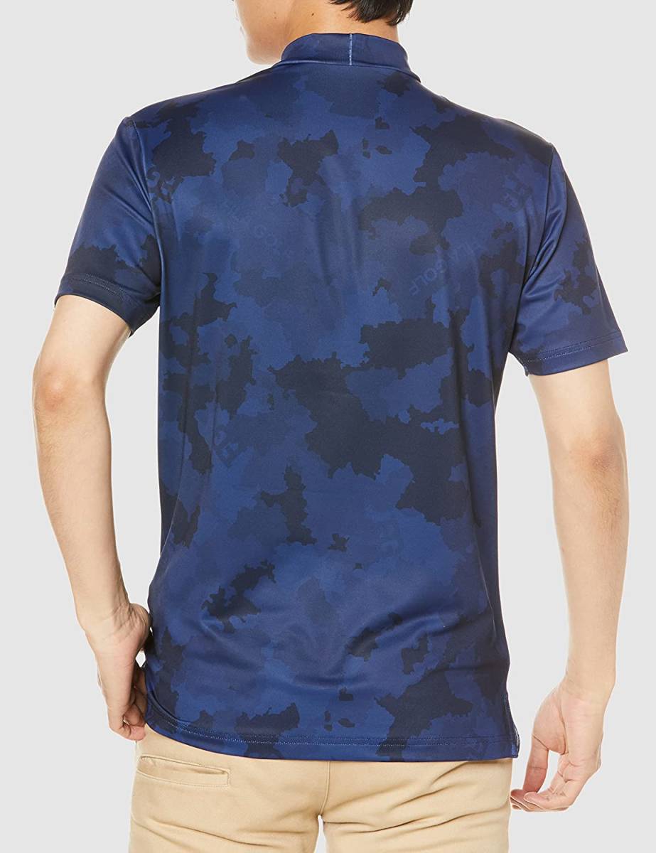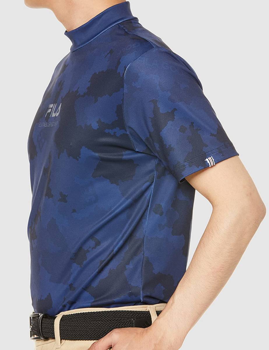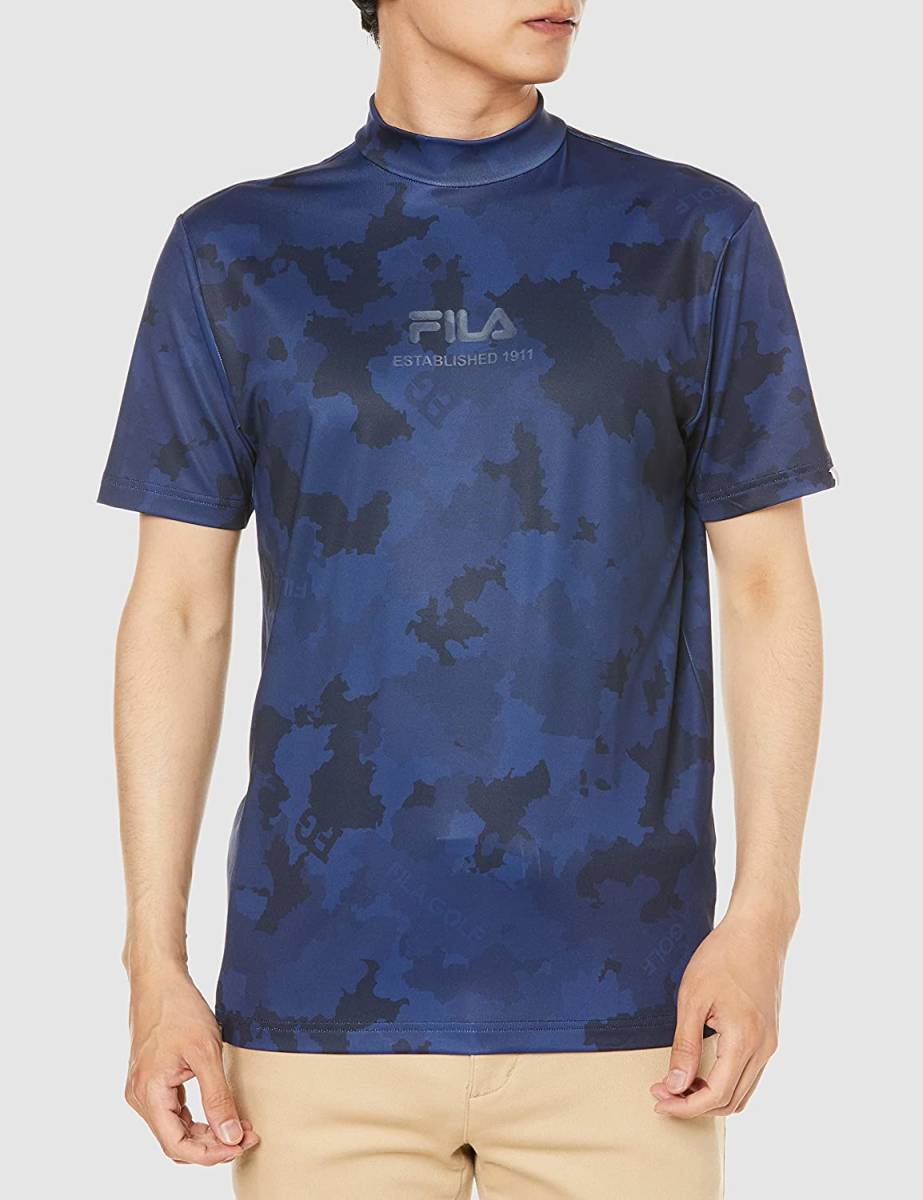 新品 フィラ ゴルフ 半袖 モックネック Tシャツ Mサイズ ネイビー 紺 741-684 迷彩 カモフラ 吸汗速乾 UVカット 税込8,690円 ゴルフウェア