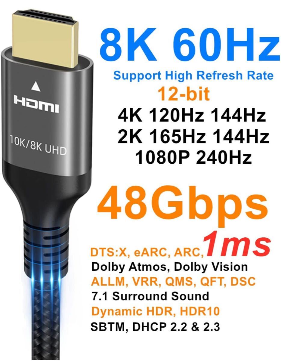 1ms、低EMI、SBTM、48Gbps帯域幅、ALLM、VRR、QMS、QFT、Dynamic HDR10、CEC、HDCP 2.2 & 2.3、VESA DSC 1.2a。