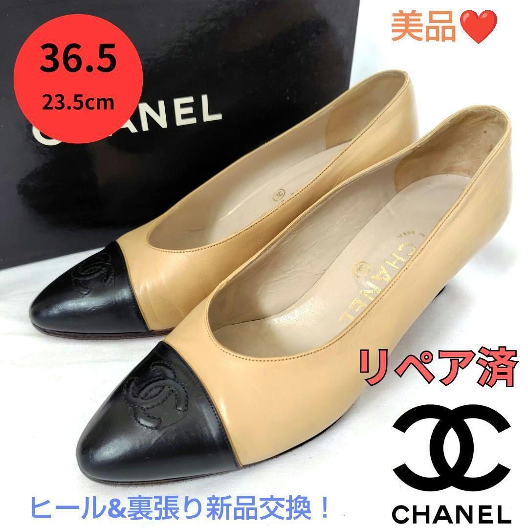美品箱付き☆CHANEL【シャネル】定番 ココマークバイカラー パンプス