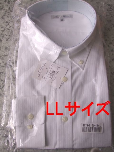 メンズ新品A984■LLサイズ■白ボタンダウンワイシャツ*ストライプ地模様
