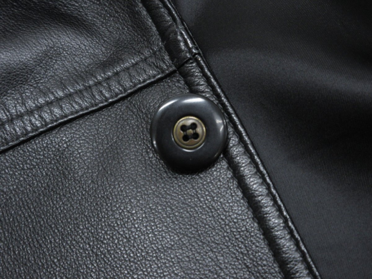 ・実際の着用回数はあまり多くないかと思われますが、裏地に薄い変色がございます。着用時は表からは見えませんが、御理解の上ご購入下さい。天然皮革のため、素材特有の多少のスレや細かいスレキズなどはご容赦ください。それ以外の状態は美品です♪