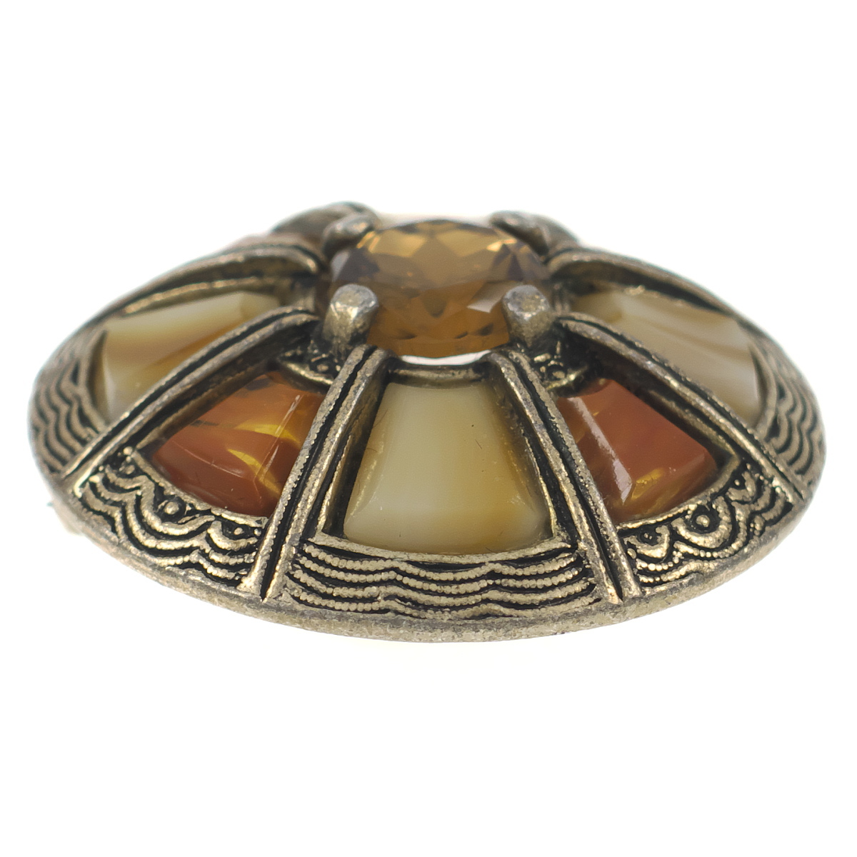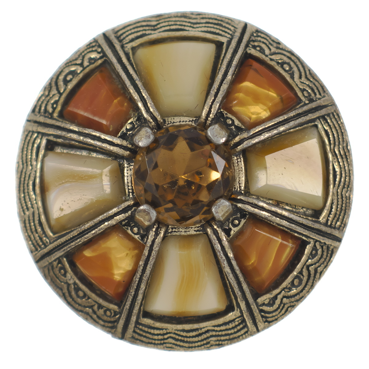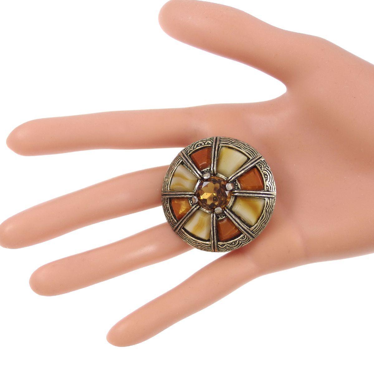 UK4037◆【MIRACLE BRITAIN】◆ ブラウン系&ベージュ系マーブルストーン ラウンド ミラクル 英国 イギリス ◆ ヴィンテージブローチ ◆