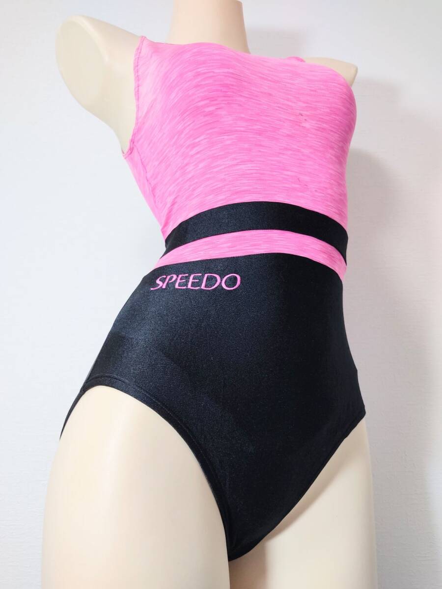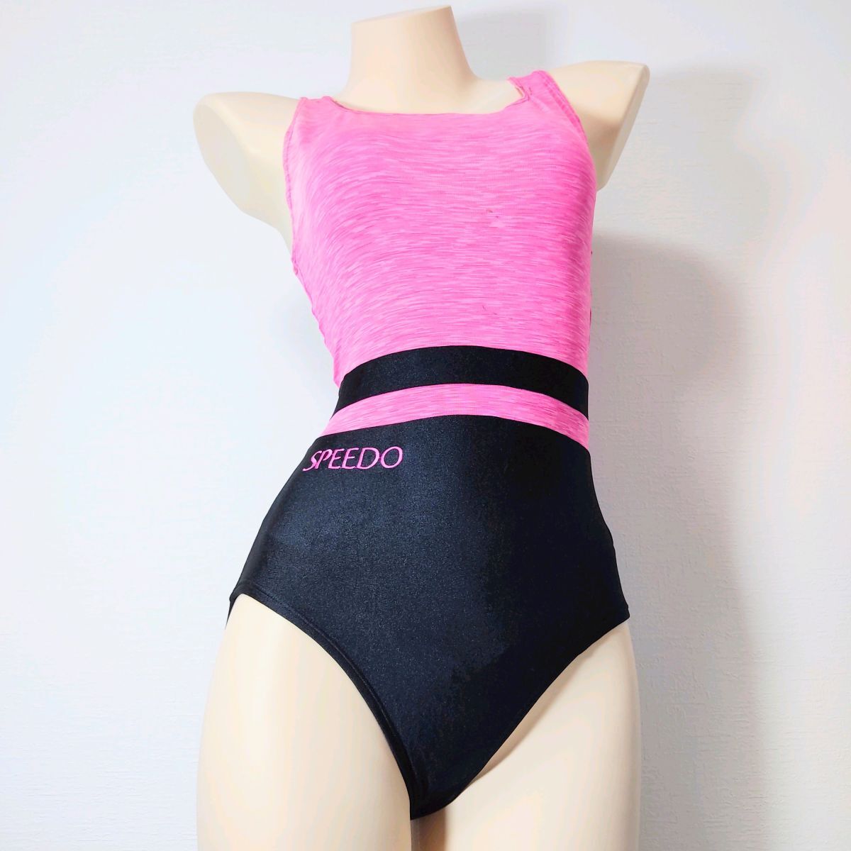 61*スピードSPEEDO女子競泳水着(L)★光沢ピンク黒ブラック★伸縮性あり大きいサイズ男性も