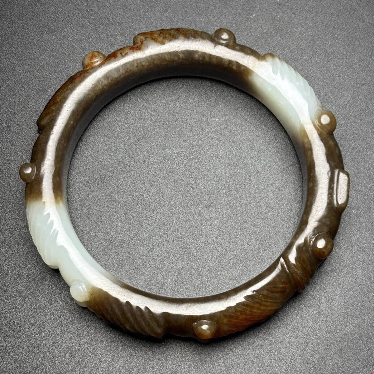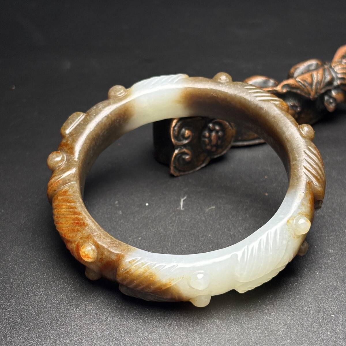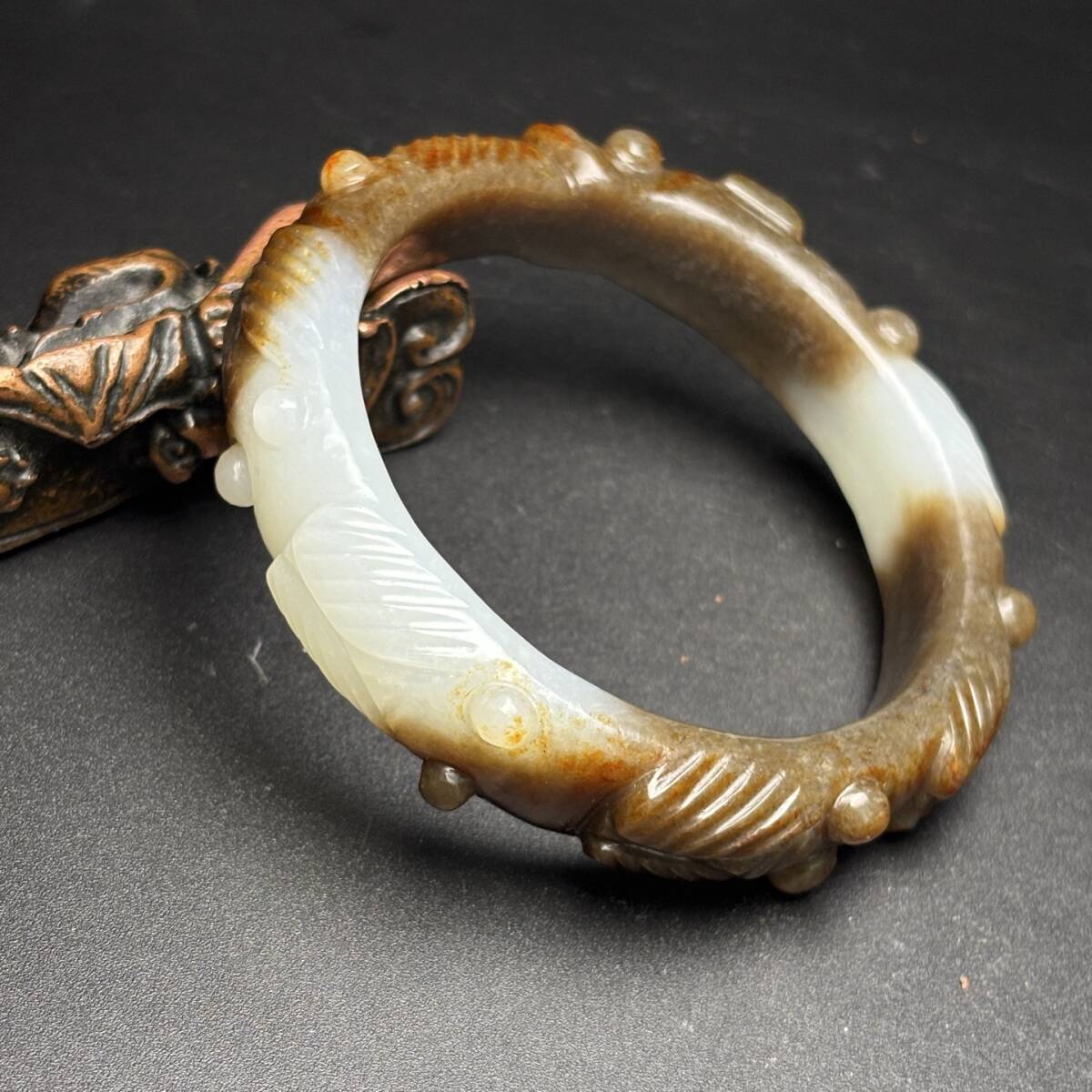 *珍品旧蔵* 清 玉彫 和田玉 腕輪 彫刻玉せみ 鳴揚天下彫刻精美 玉質温潤 包漿醇厚 沁色美觀 極細工 中国古玩 骨董品 古美味 H48