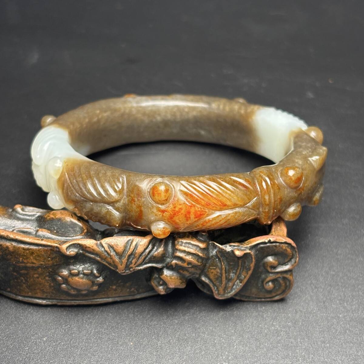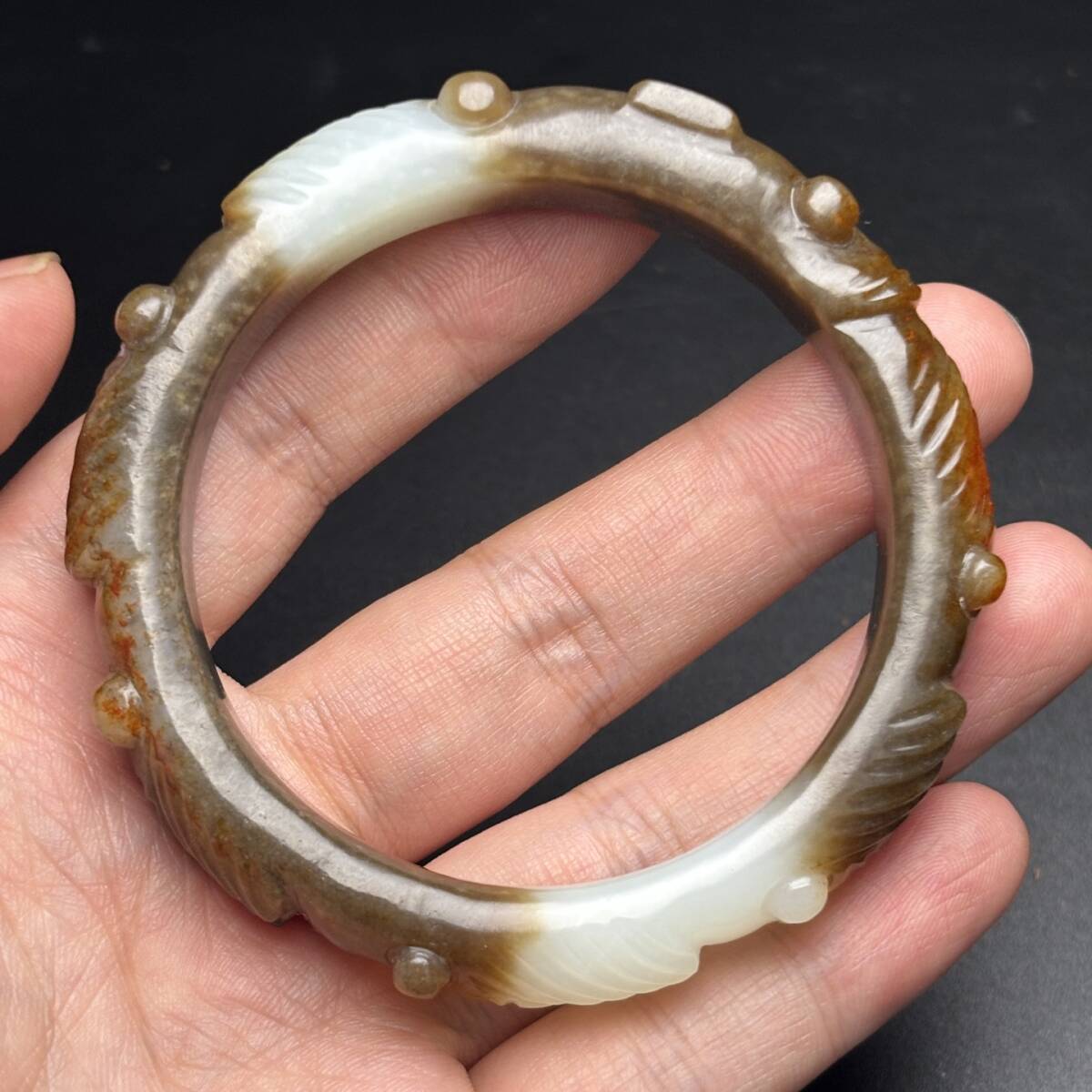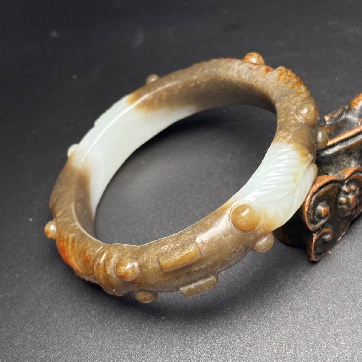*珍品旧蔵* 清 玉彫 和田玉 腕輪 彫刻玉せみ 鳴揚天下彫刻精美 玉質温潤 包漿醇厚 沁色美觀 極細工 中国古玩 骨董品 古美味 H48